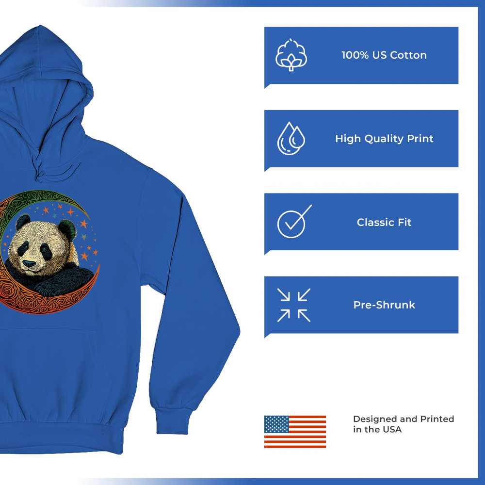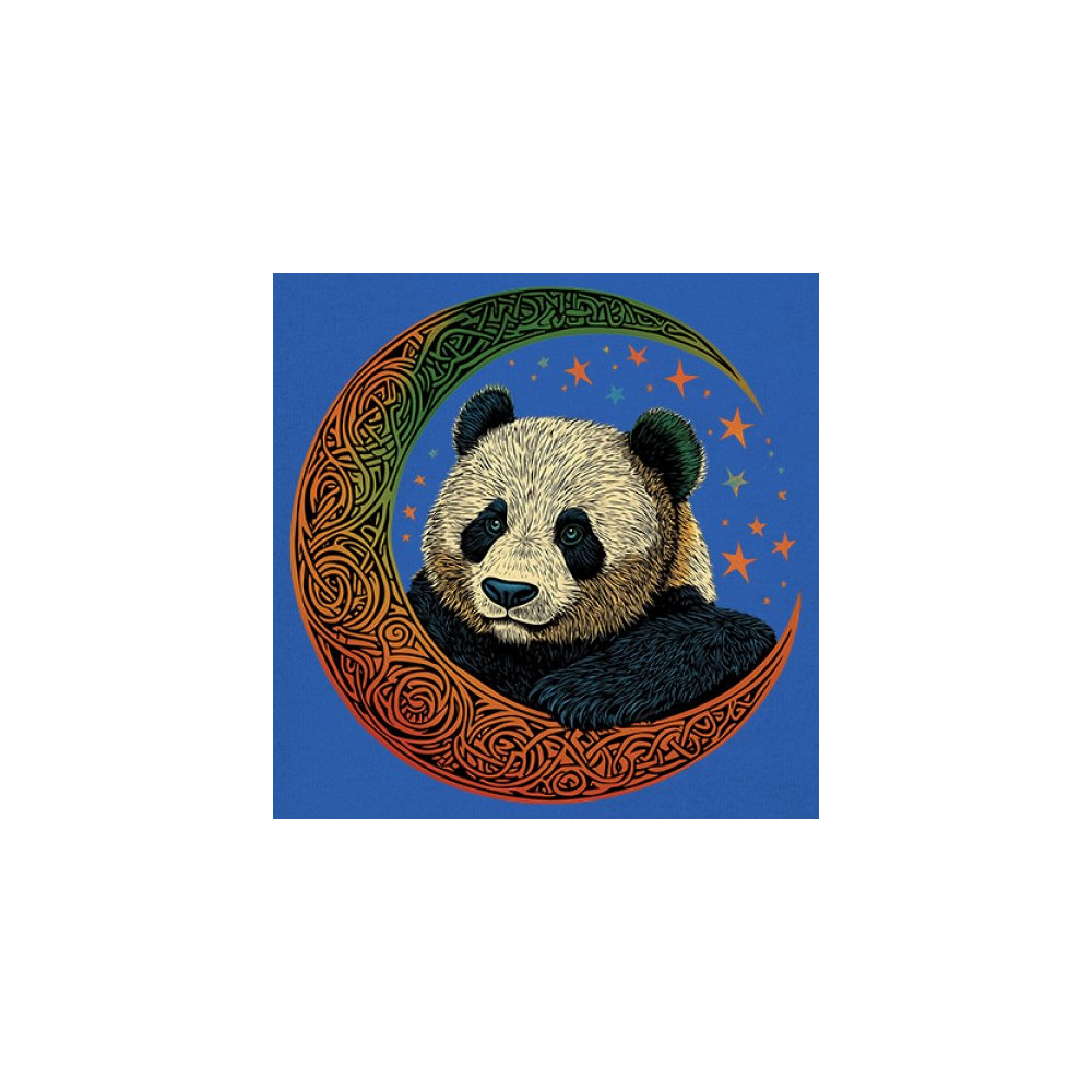 Peaceful panda in Celtic crescent moon design—symbol of harmony, balance, and spiritual calm for nature lovers, mystics, and gentle souls.