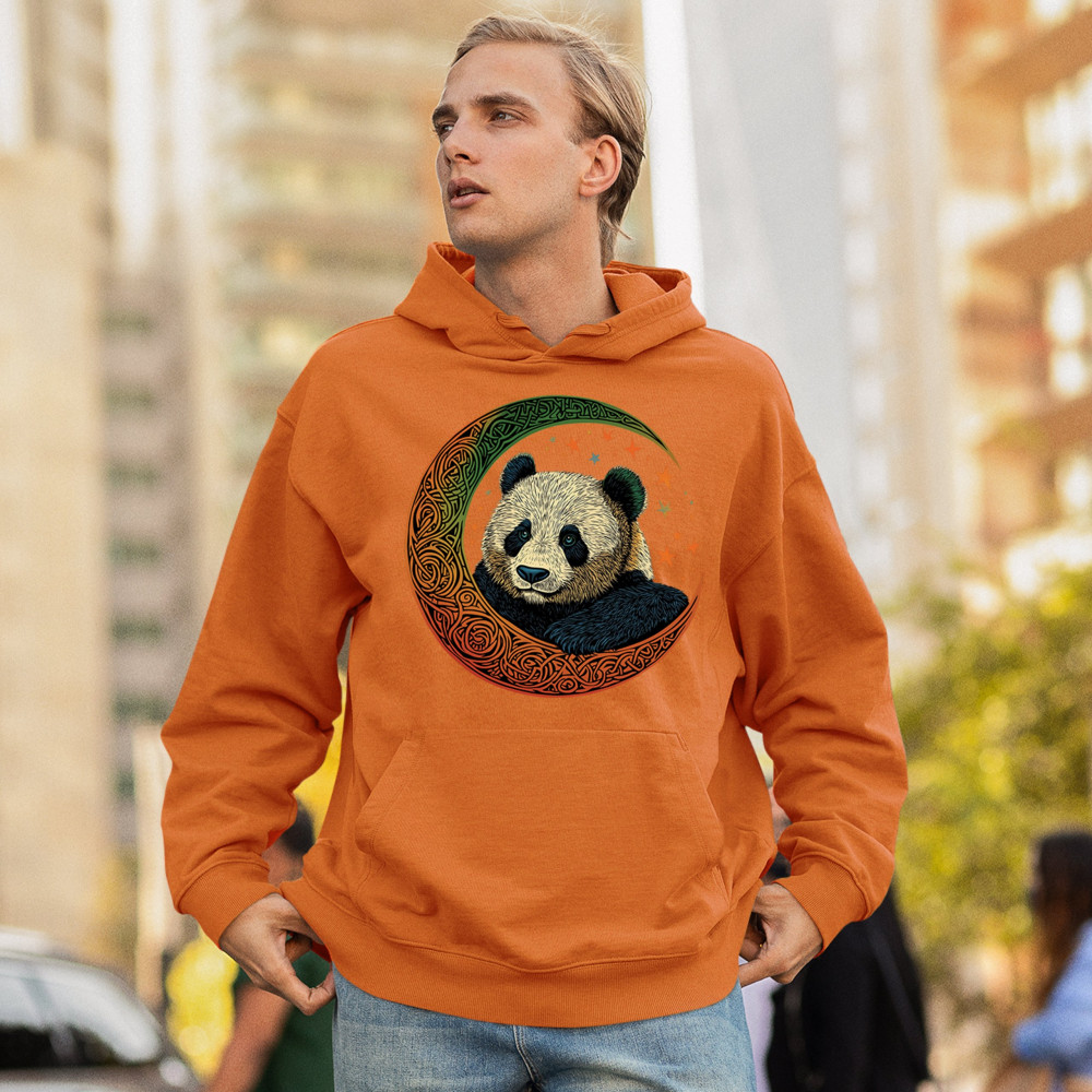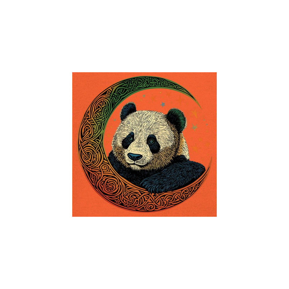 Peaceful panda in Celtic crescent moon design—symbol of harmony, balance, and spiritual calm for nature lovers, mystics, and gentle souls.