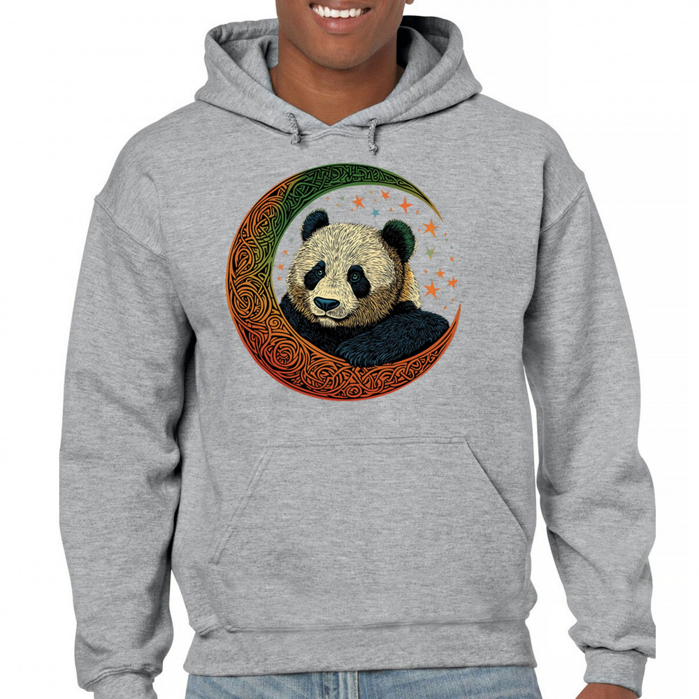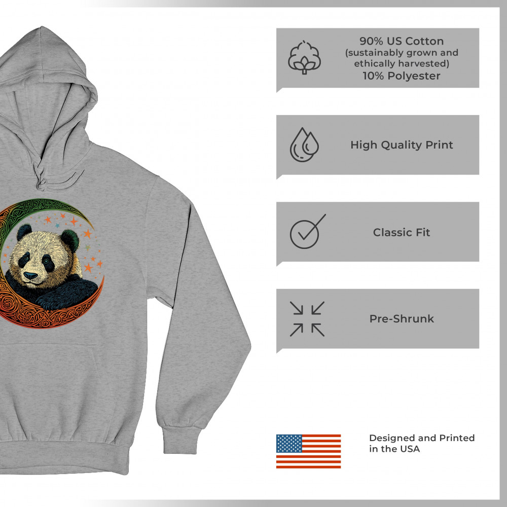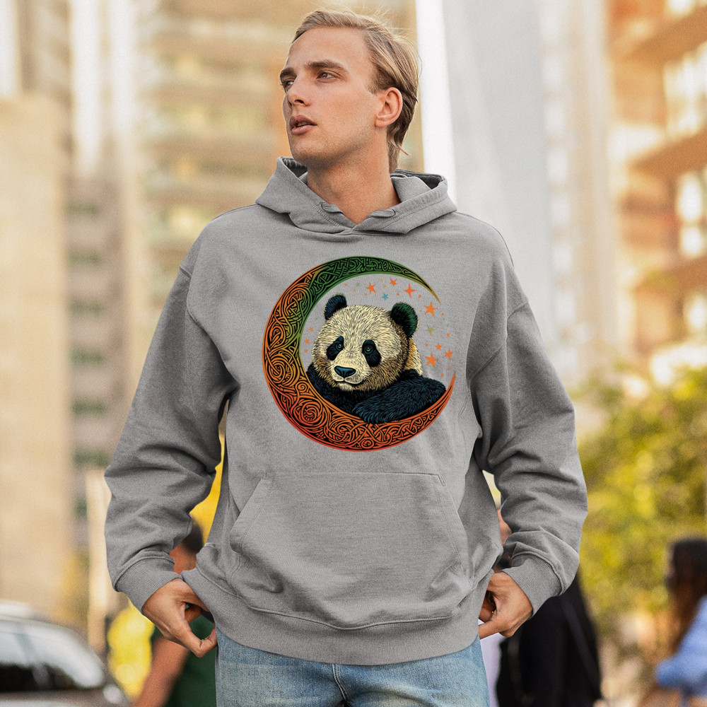 Peaceful panda in Celtic crescent moon design—symbol of harmony, balance, and spiritual calm for nature lovers, mystics, and gentle souls.