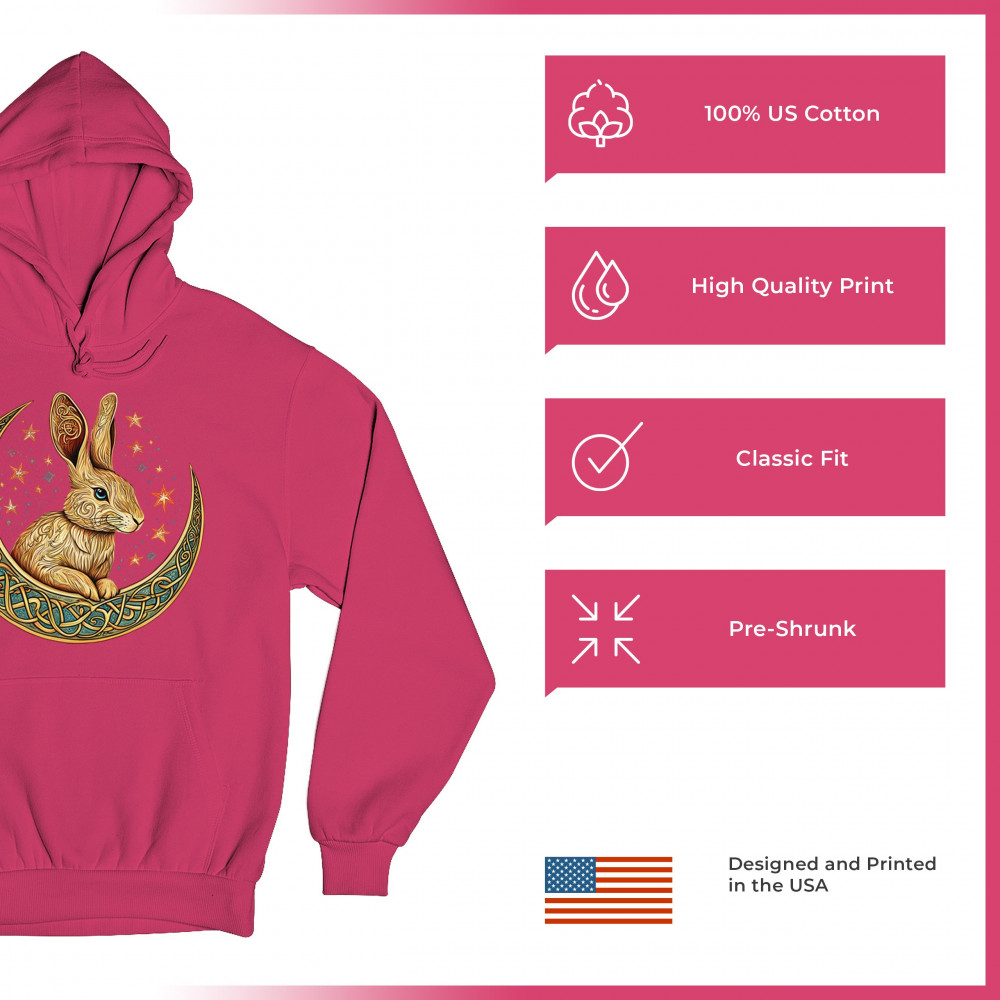 Mystical rabbit in Celtic moon—symbolizing intuition, rebirth, and spring energy. Ideal for fantasy lovers, mystics, and nature fans.