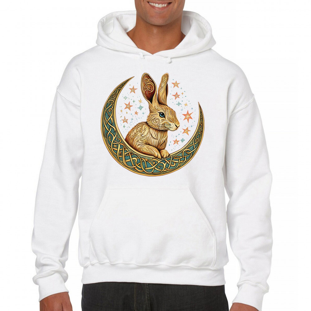 Mystical rabbit in Celtic moon—symbolizing intuition, rebirth, and spring energy. Ideal for fantasy lovers, mystics, and nature fans.