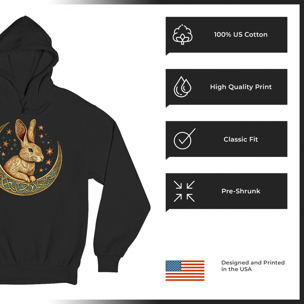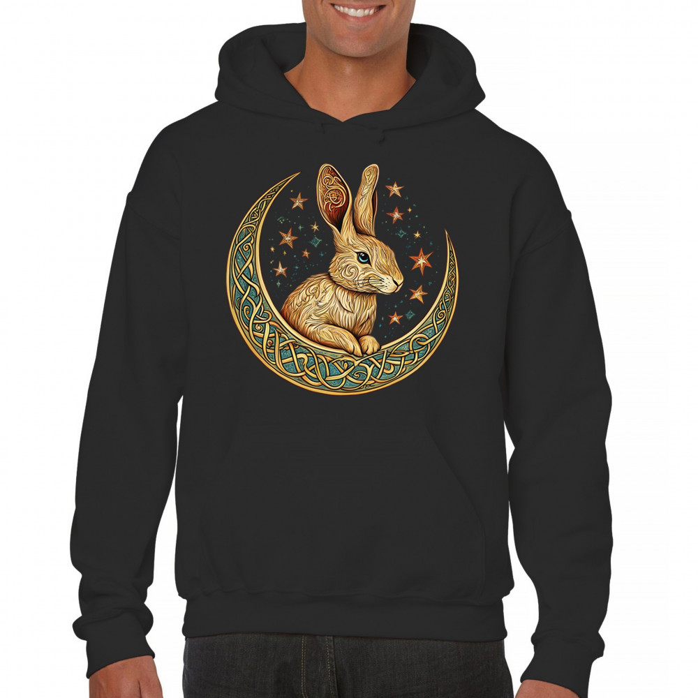 Mystical rabbit in Celtic moon—symbolizing intuition, rebirth, and spring energy. Ideal for fantasy lovers, mystics, and nature fans.