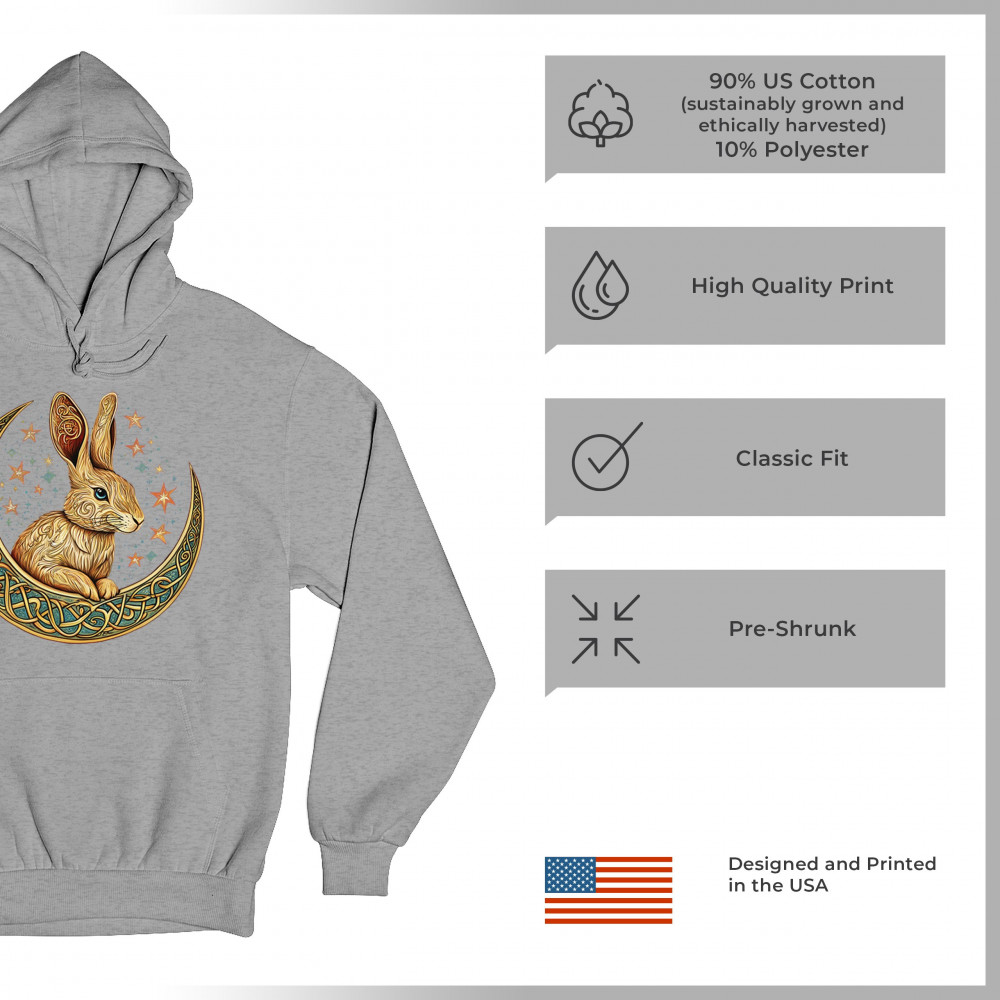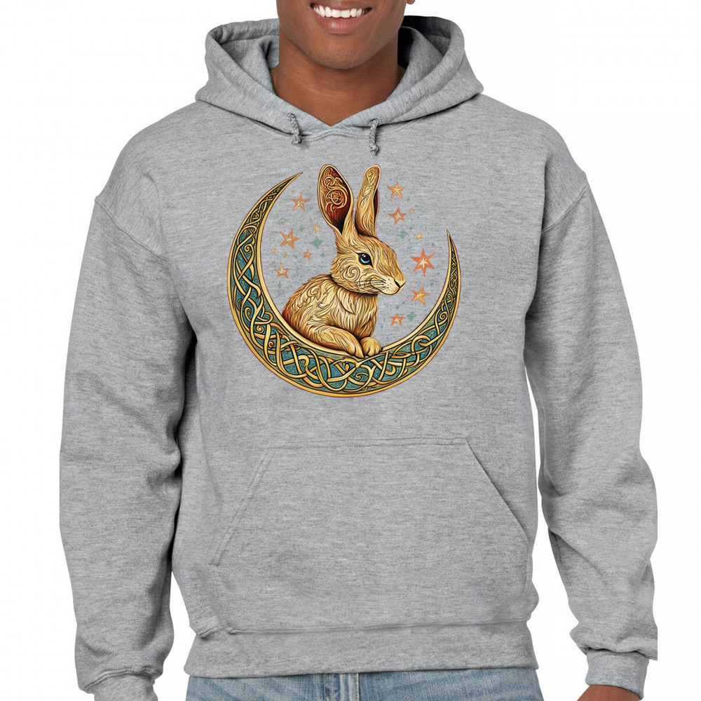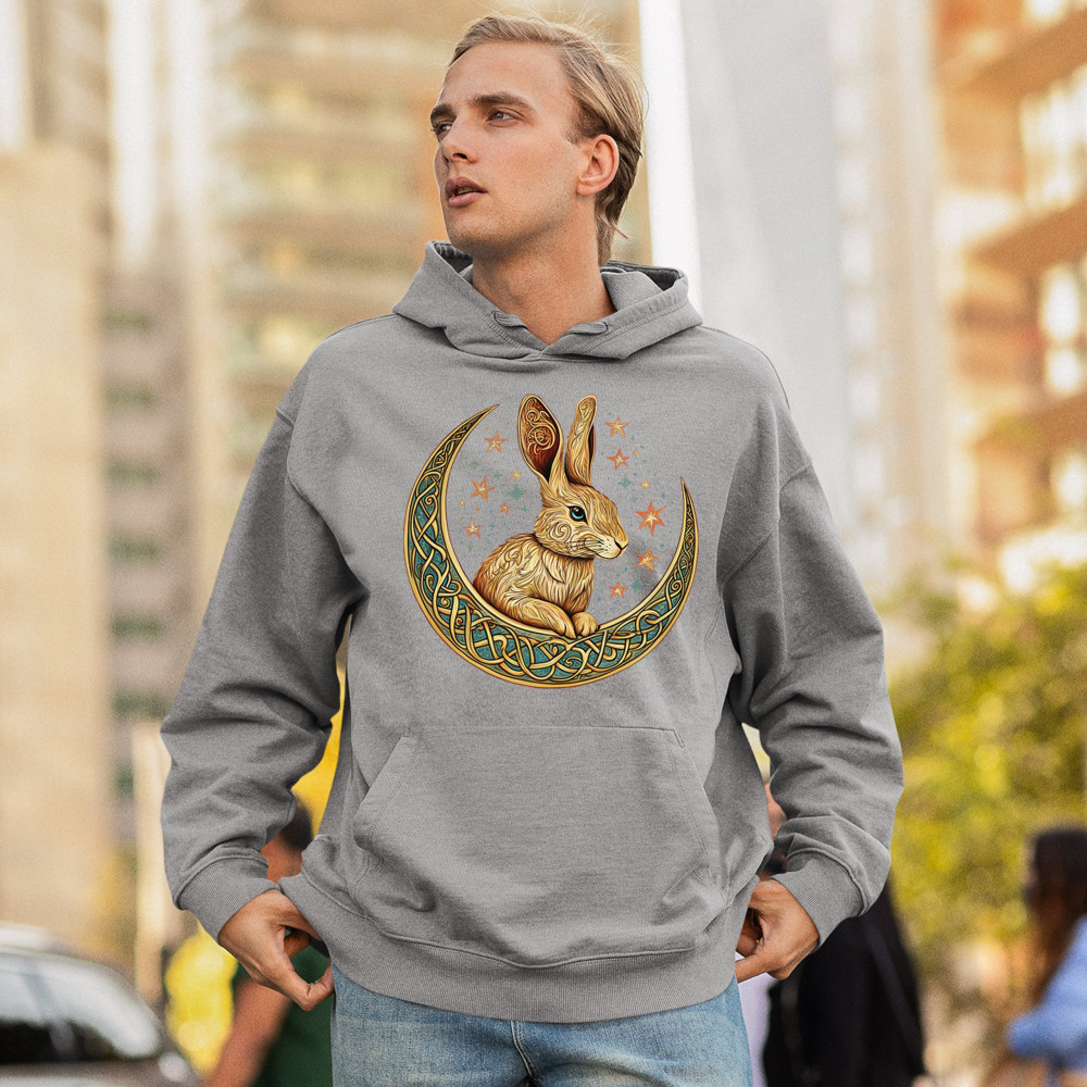 Mystical rabbit in Celtic moon—symbolizing intuition, rebirth, and spring energy. Ideal for fantasy lovers, mystics, and nature fans.