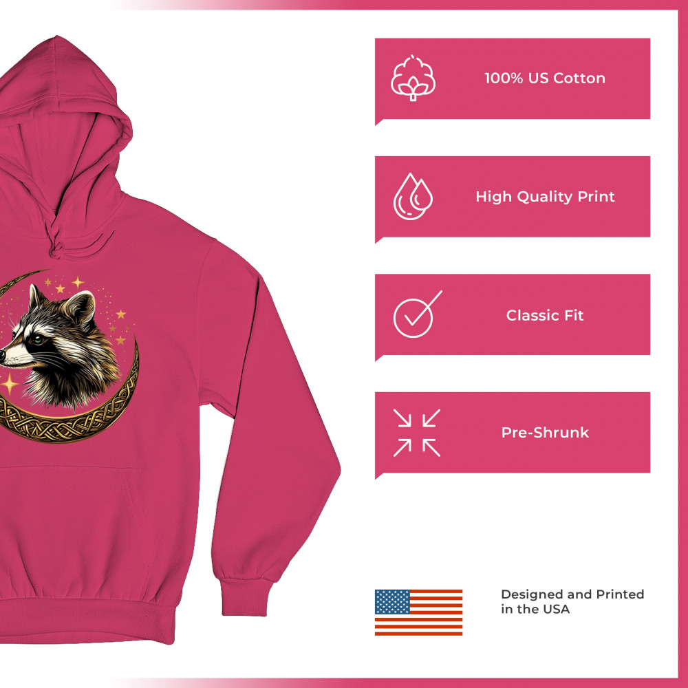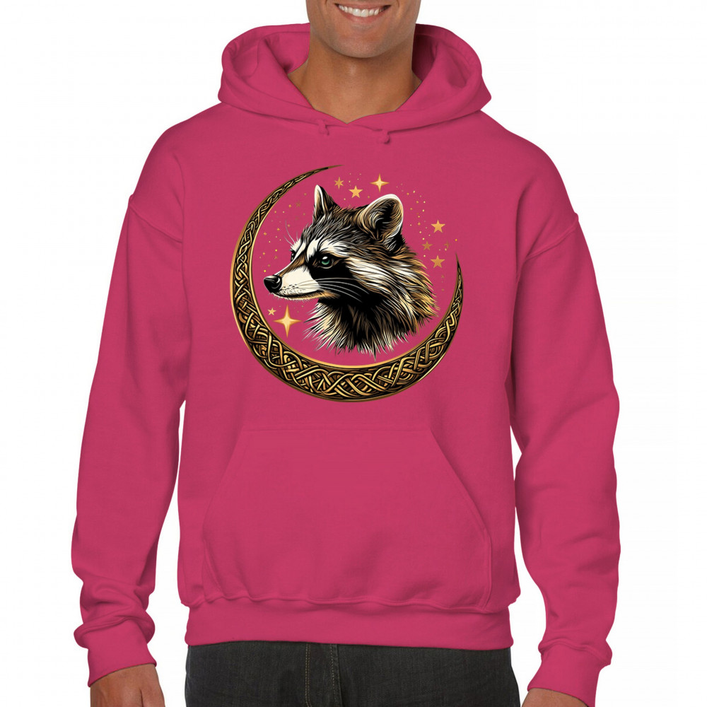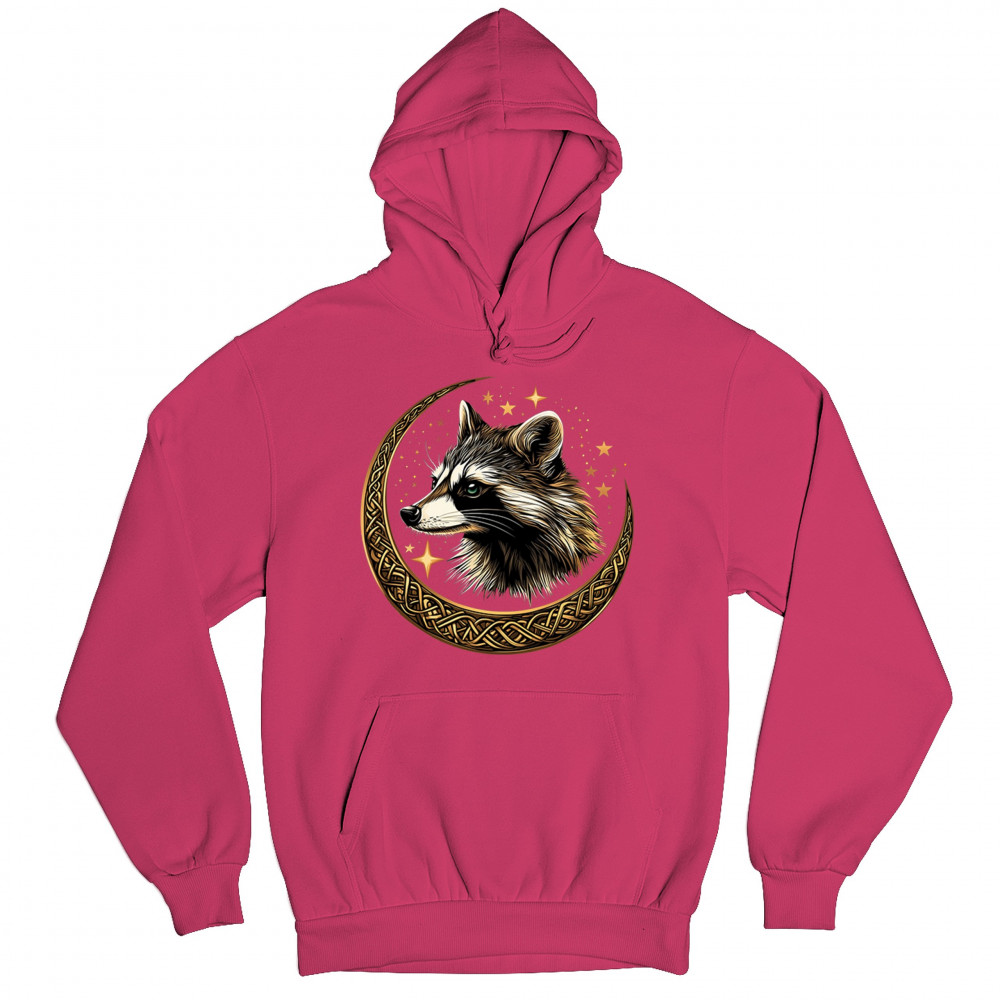 CELTIC MOON RACCOON sweatshirt mystical forest bandit spiritual nordic hoodie pink