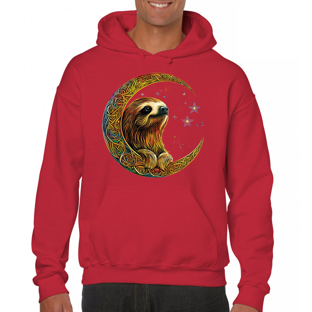 Celebrate peace and presence with this stunning sloth design cradled in a gold Celtic crescent moon. Surrounded by a vibrant starry sky, the image blends jungle whimsy with tribal patterns and mystical vibes. A perfect design for lovers of fantasy animals, mindfulness, and slow living. A beautiful tribute to spiritual stillness and cosmic calm.