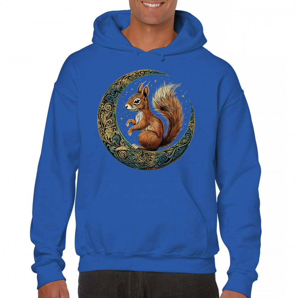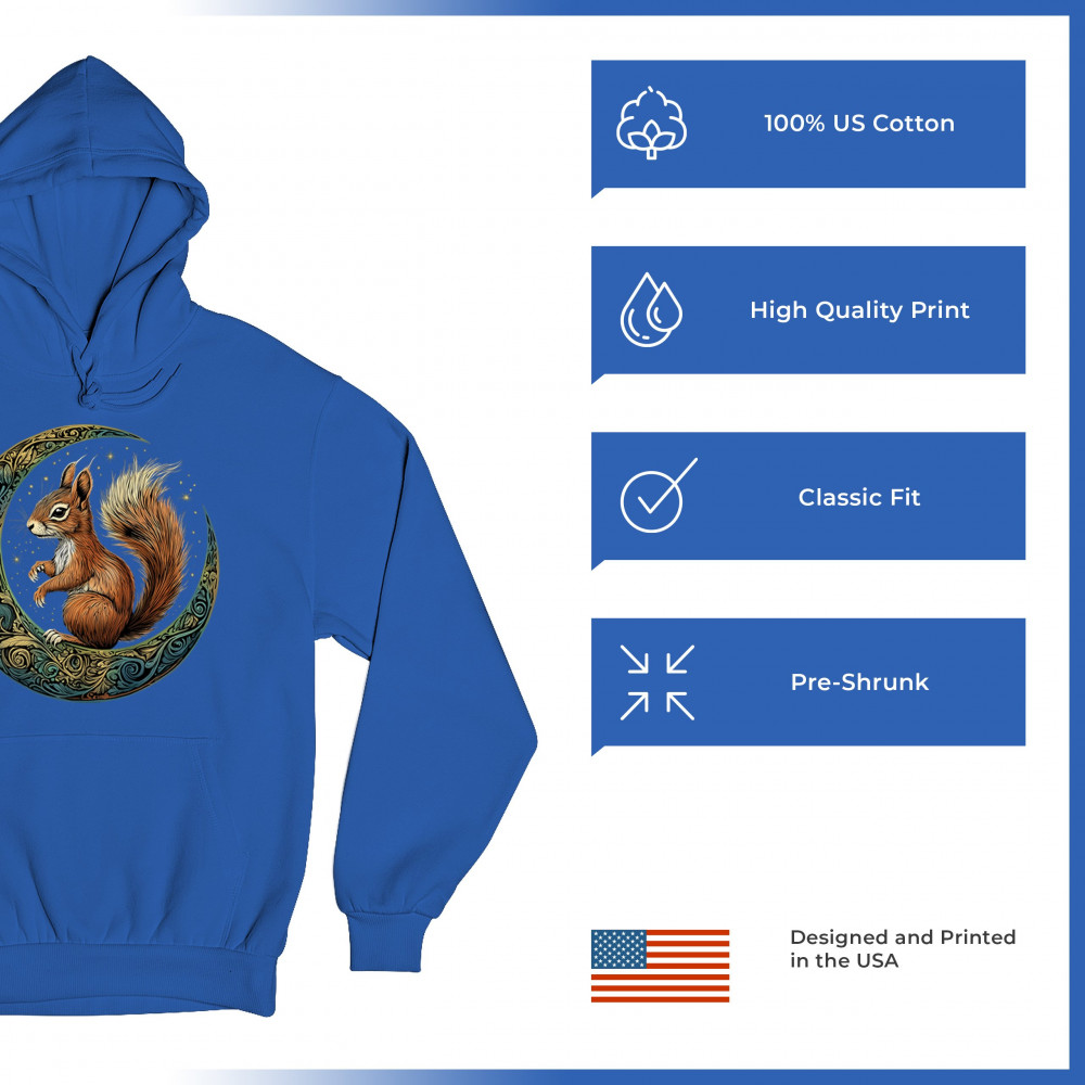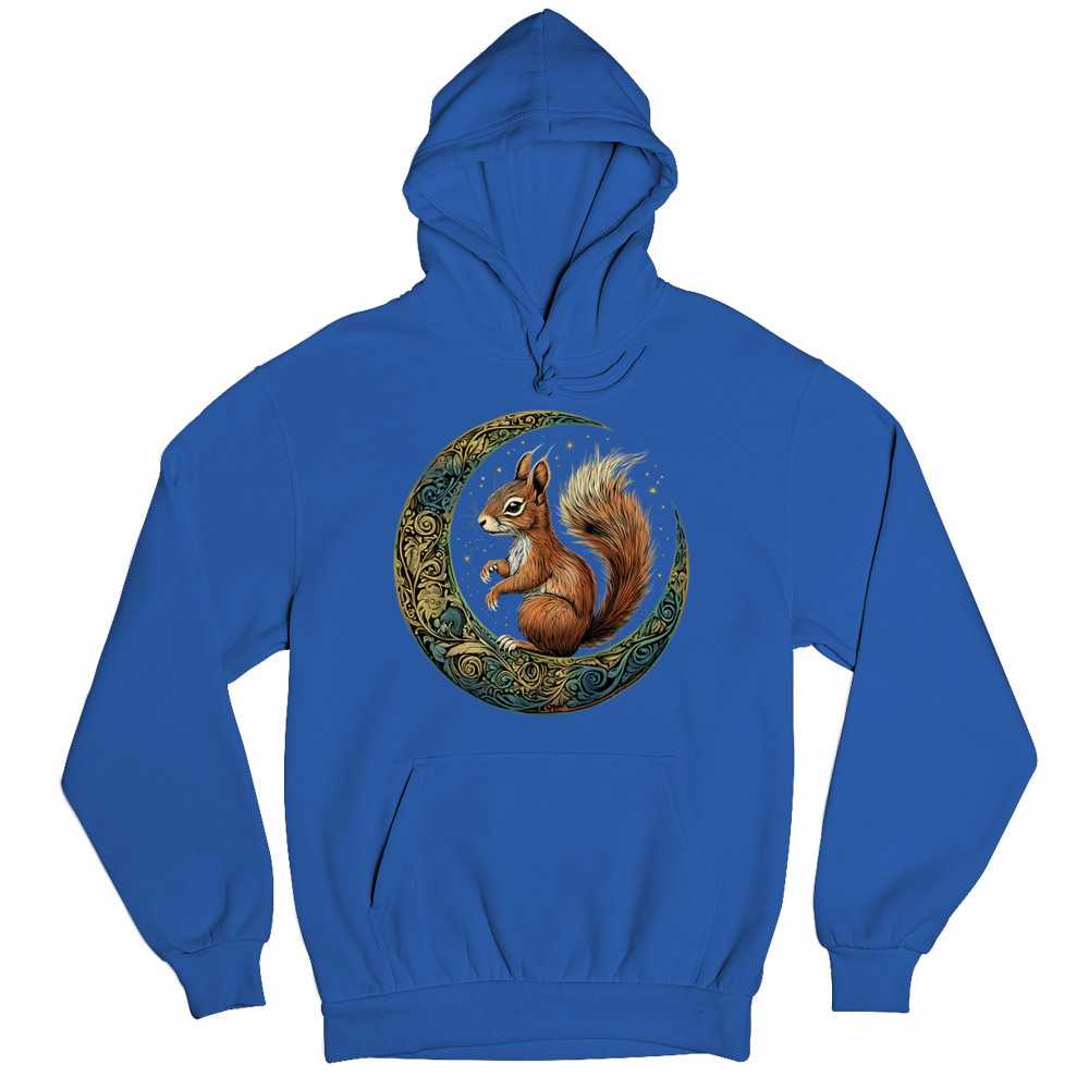 Celebrate agility, awareness, and forest wisdom with this magical red squirrel design. Nestled in a green-gold Celtic crescent moon and backed by a starry cosmic sky, this piece merges natural energy with tribal patterns and celestial wonder. A unique design for animal spirit believers, forest wanderers, and fantasy nature fans.