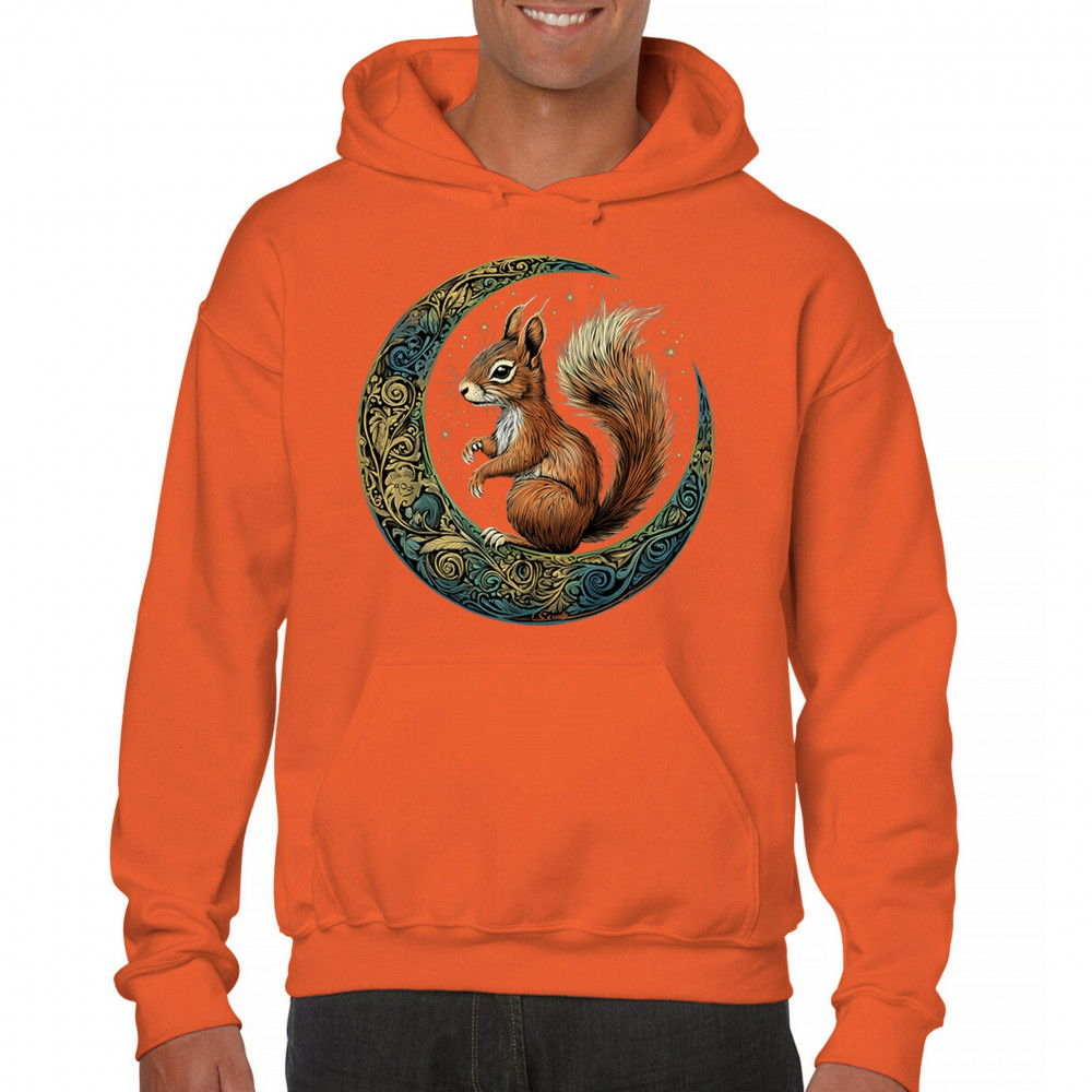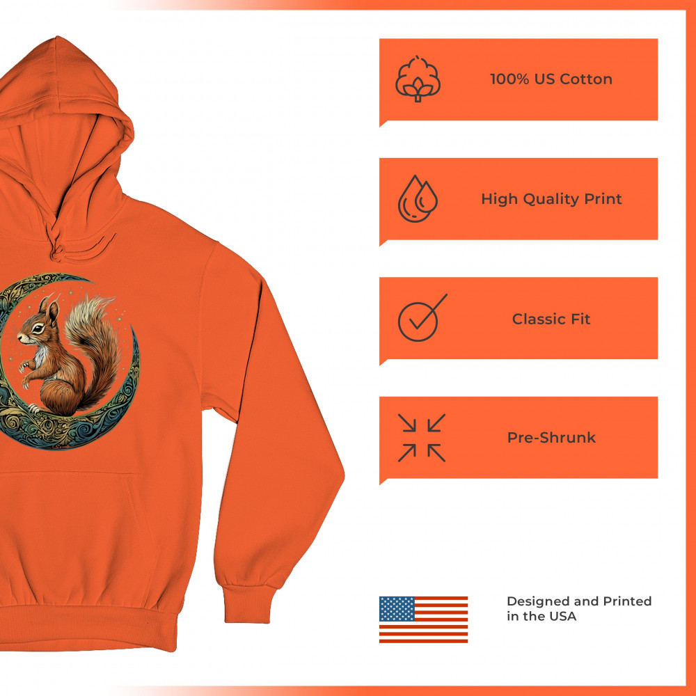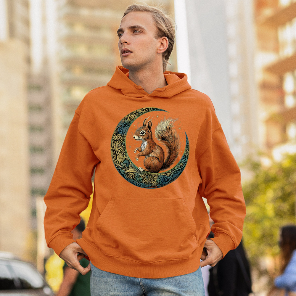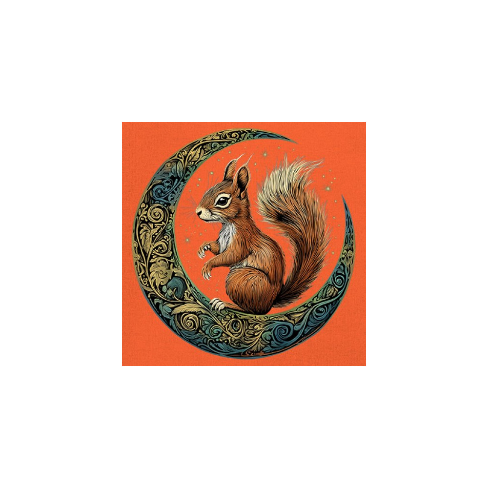 Celebrate agility, awareness, and forest wisdom with this magical red squirrel design. Nestled in a green-gold Celtic crescent moon and backed by a starry cosmic sky, this piece merges natural energy with tribal patterns and celestial wonder. A unique design for animal spirit believers, forest wanderers, and fantasy nature fans.