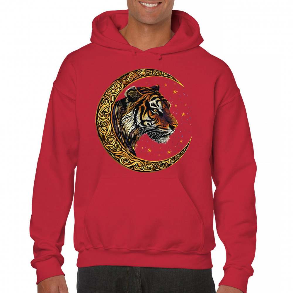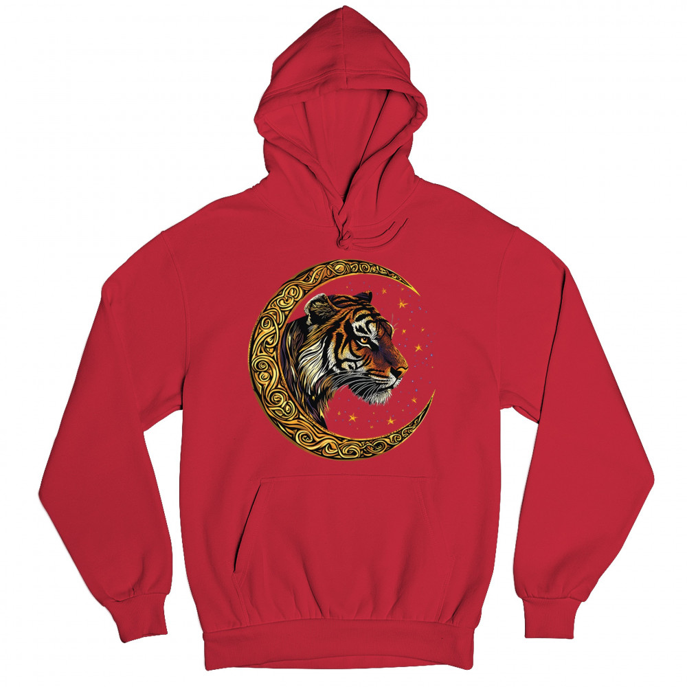 Bold tiger design in Celtic moon with cosmic sky. Symbol of strength, instinct, and jungle mysticism. Great for animal lovers and fantasy fans.
