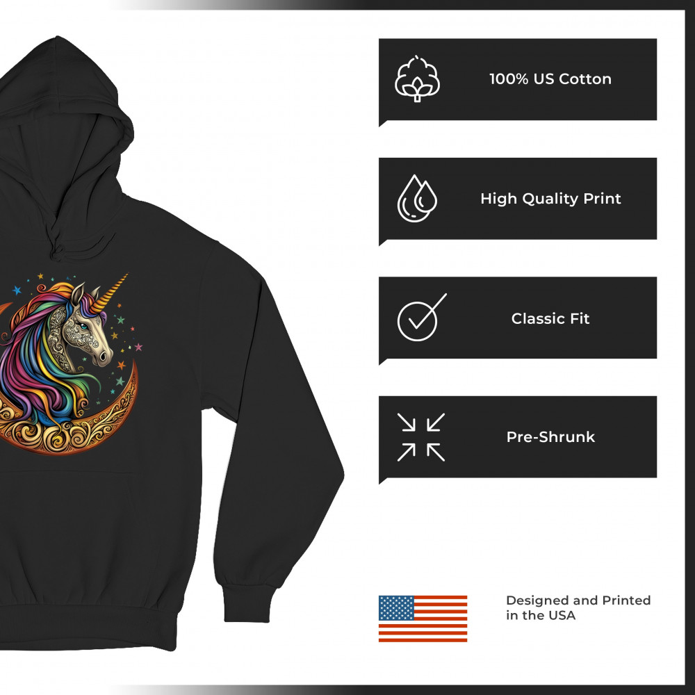 CELTIC MOON UNICORN sweatshirt rainbow fantasy spiritual magic horse hoodie black