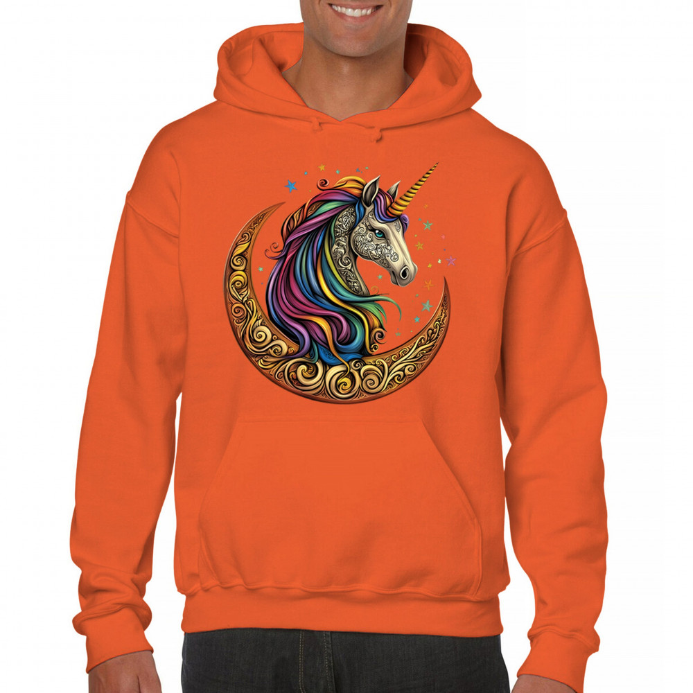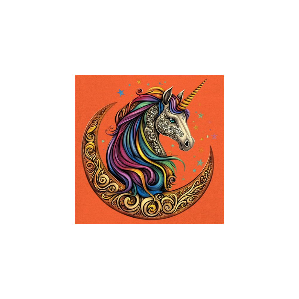 Rainbow-maned unicorn in golden Celtic moon design—perfect for fantasy lovers, dreamers, and unicorn fans who believe in magic and spirit.