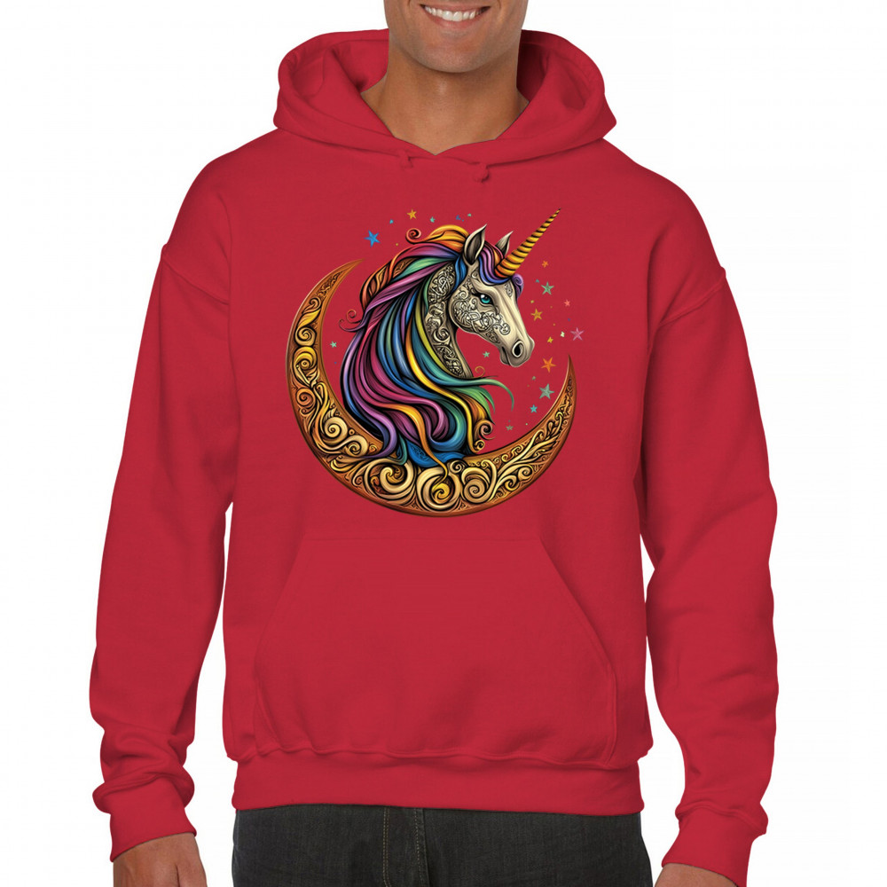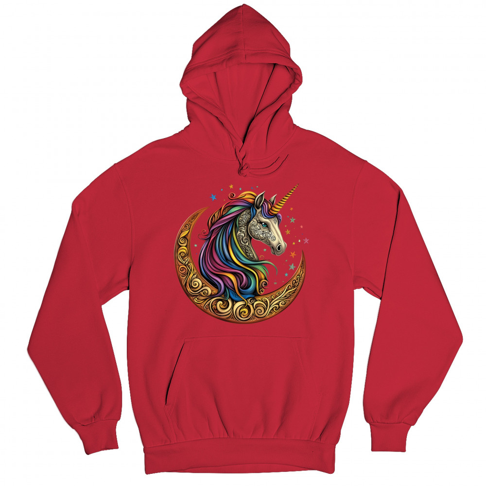 Rainbow-maned unicorn in golden Celtic moon design—perfect for fantasy lovers, dreamers, and unicorn fans who believe in magic and spirit.