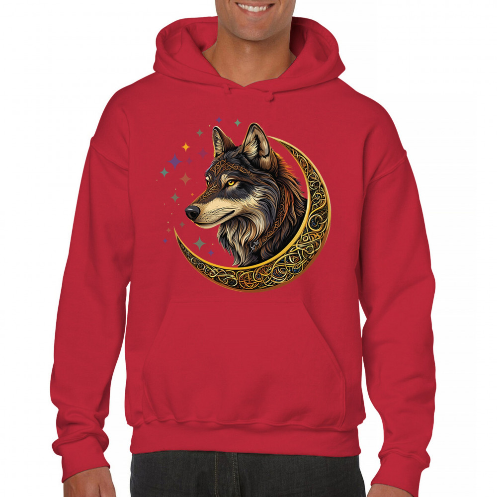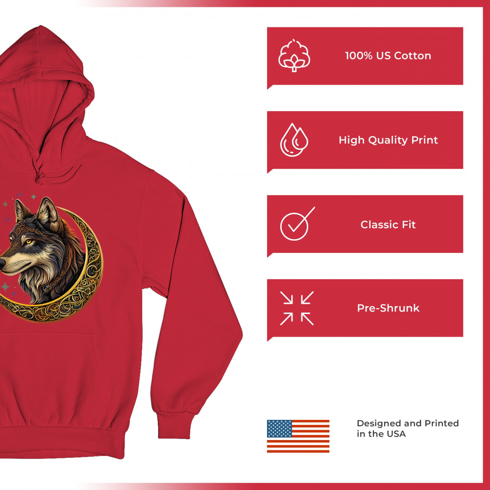 Celtic wolf design in a glowing crescent moon. Symbolizes loyalty, mysticism, and wild energy. Great for fantasy fans and spirit animal seekers.