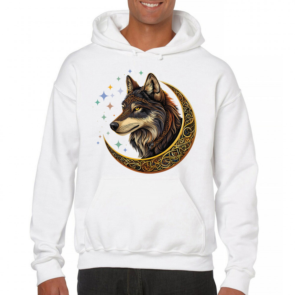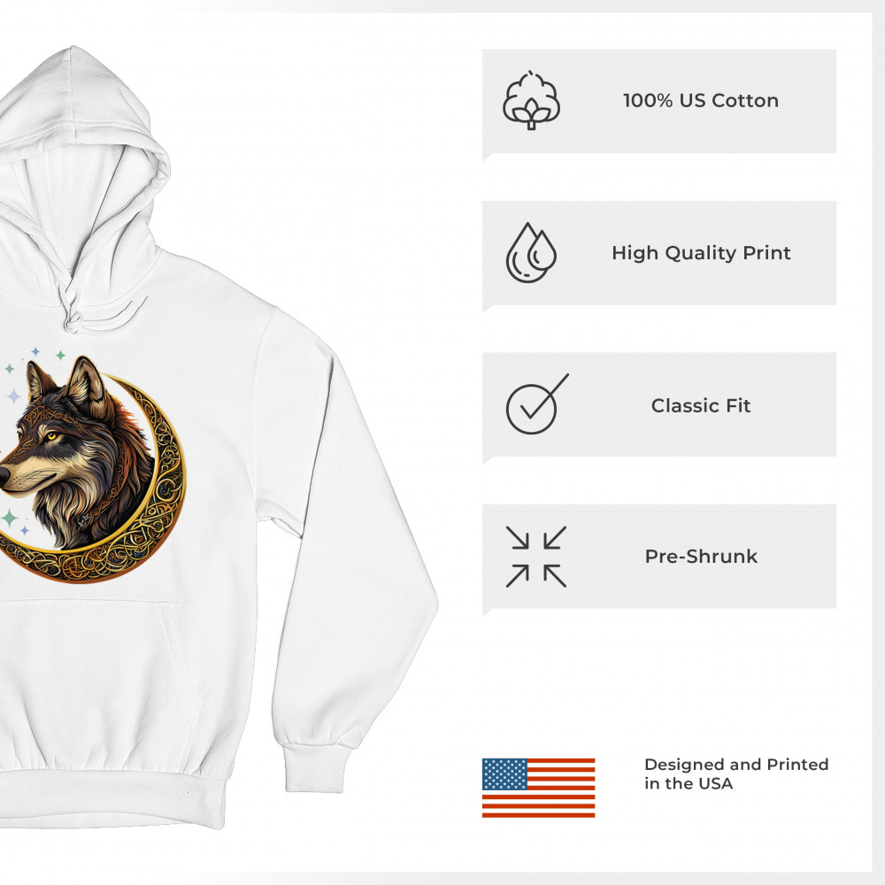 Celtic wolf design in a glowing crescent moon. Symbolizes loyalty, mysticism, and wild energy. Great for fantasy fans and spirit animal seekers.