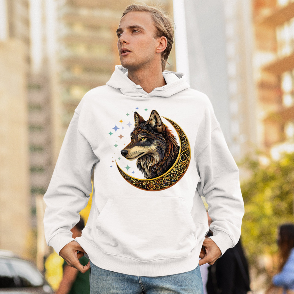 Powerful and wise, this Celtic wolf design is surrounded by a glowing golden crescent moon and cosmic stars. A symbol of loyalty, intuition, and spiritual guidance, this design is perfect for wolf lovers, fantasy fans, and tribal art enthusiasts. A bold celebration of wilderness mysticism and soul-deep strength.