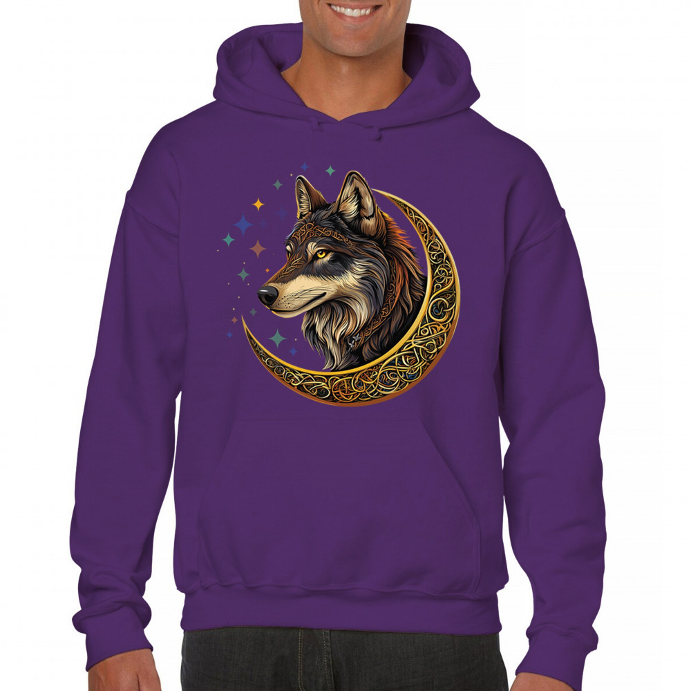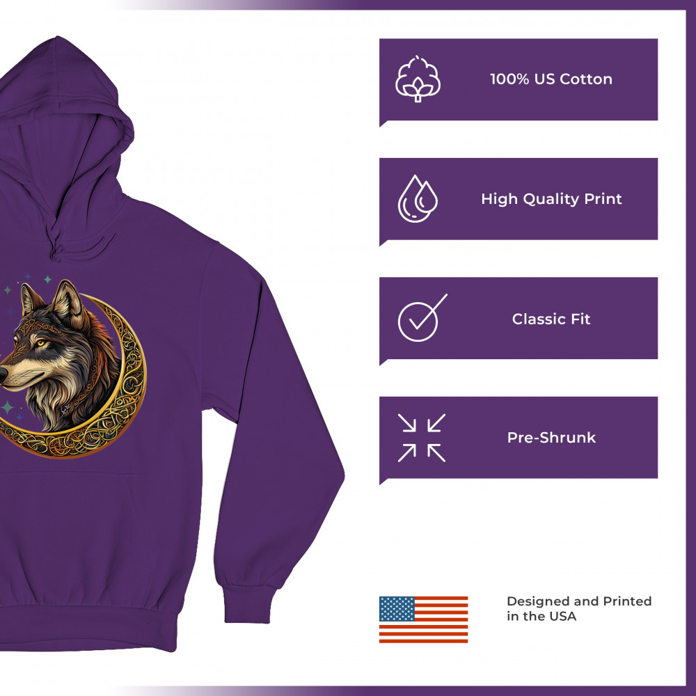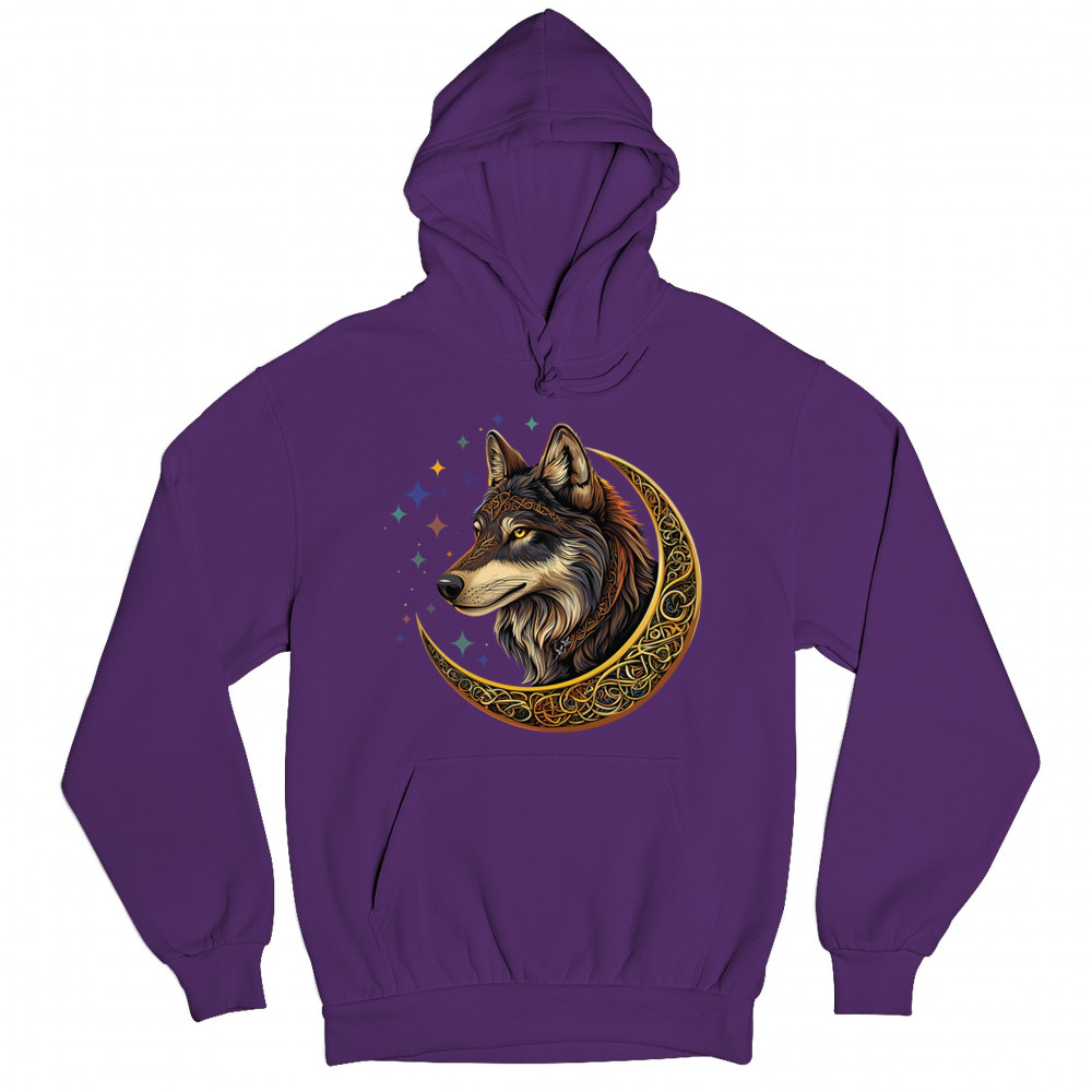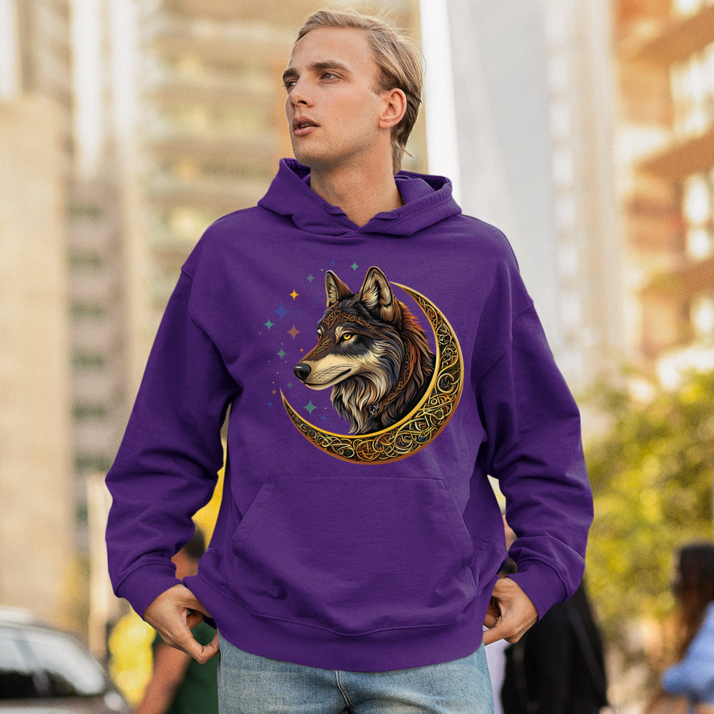 Celtic wolf design in a glowing crescent moon. Symbolizes loyalty, mysticism, and wild energy. Great for fantasy fans and spirit animal seekers.