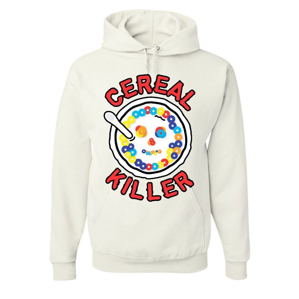 CEREAL KILLER hoodie funny breakfast morning meal serial killer sweatshirt white