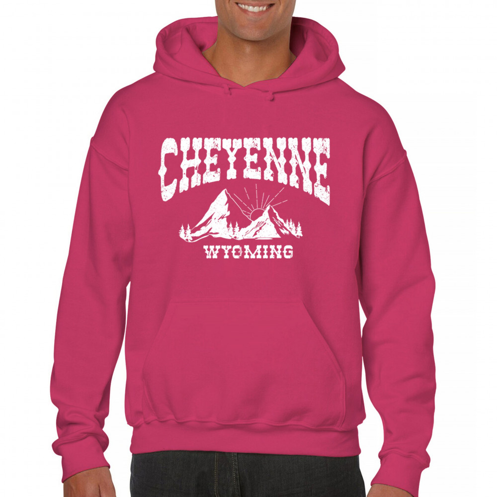 Celebrate Wyoming's beauty with this Cheyenne mountain sunrise design. Featuring vintage-style mountain scenery and Western font, it captures the essence of local pride and rugged outdoor adventure. Perfect for travelers, hikers, or anyone who loves the Western landscape.