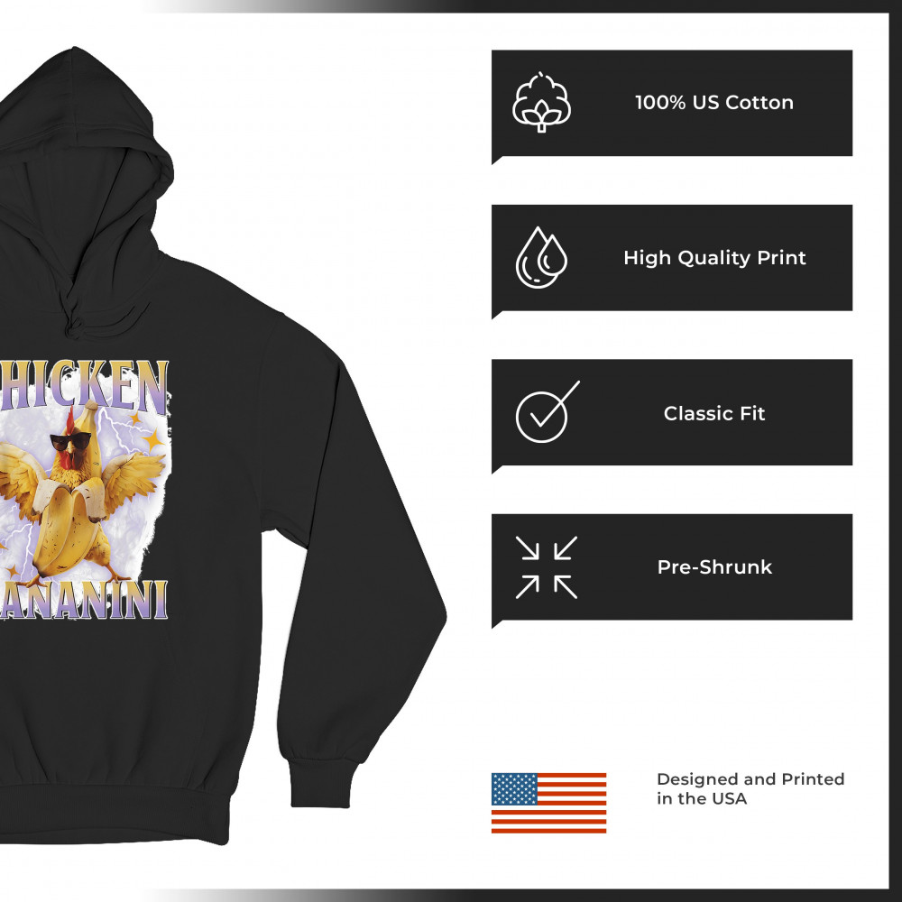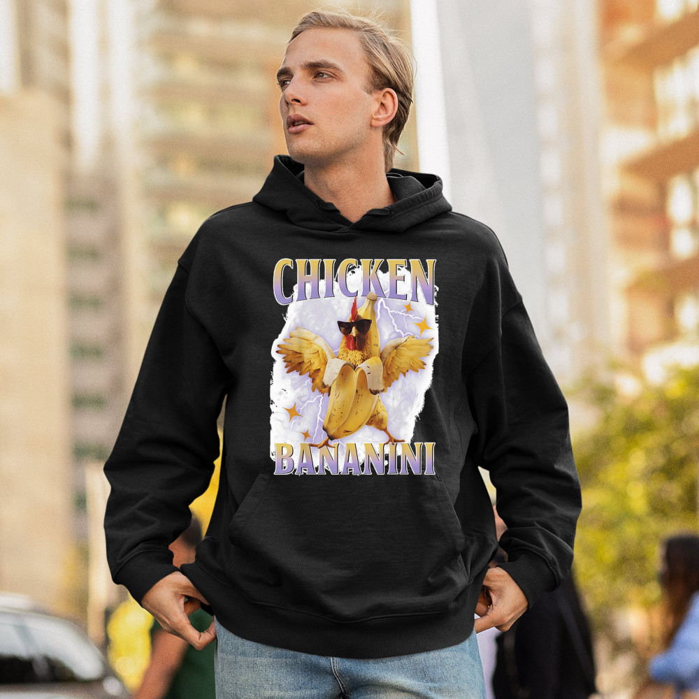 Chicken Bananini is meme absurdity with extra peel. Featuring a chicken emerging from a banana and rocking shades, this design blends cursed-core fashion, viral animal humor, Gen Z brainrot, and TikTok-style chaos. A must-have for fans of ironic mashups, surreal creatures, and internet-fueled nonsense.