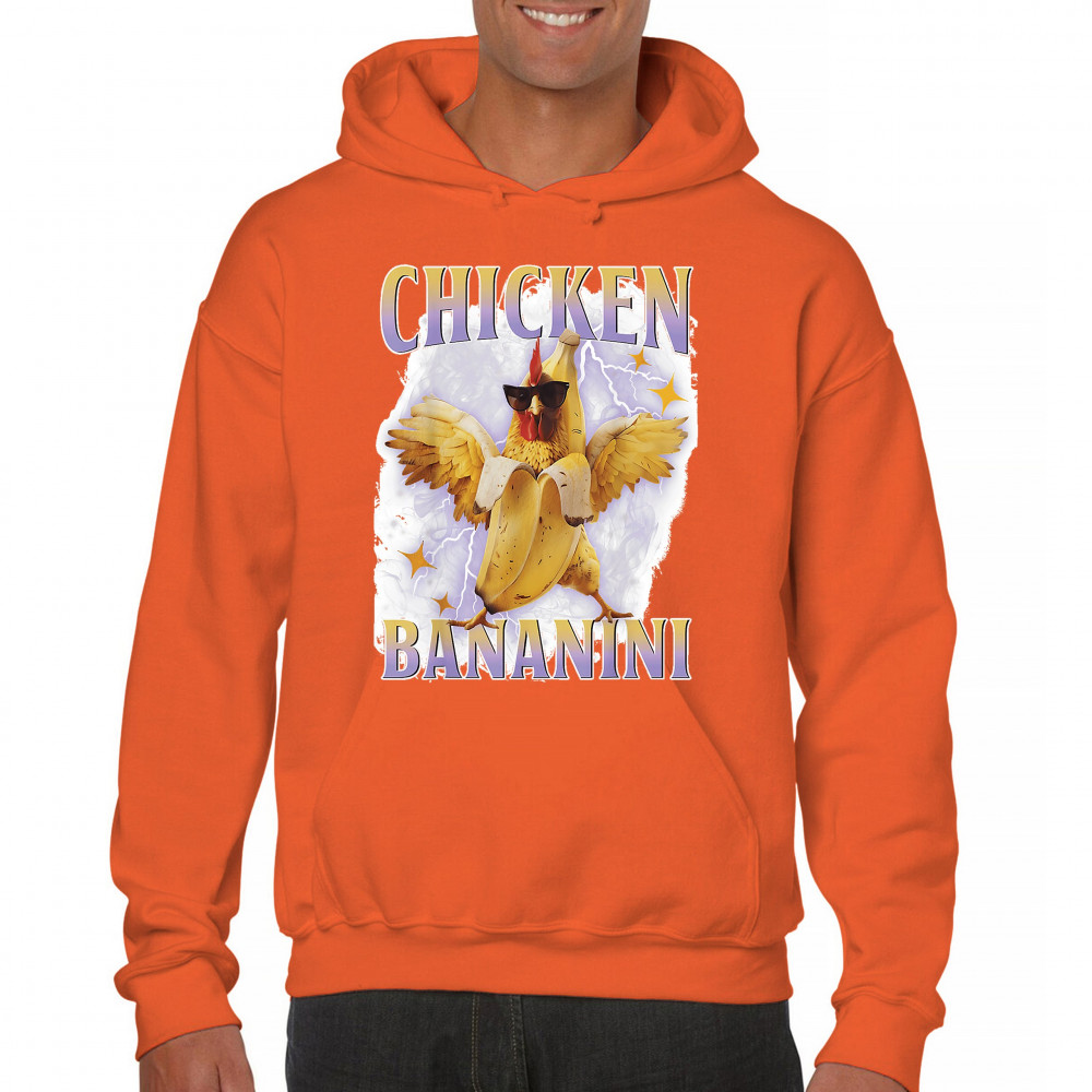 Chicken Bananini is meme absurdity with extra peel. Featuring a chicken emerging from a banana and rocking shades, this design blends cursed-core fashion, viral animal humor, Gen Z brainrot, and TikTok-style chaos. A must-have for fans of ironic mashups, surreal creatures, and internet-fueled nonsense.