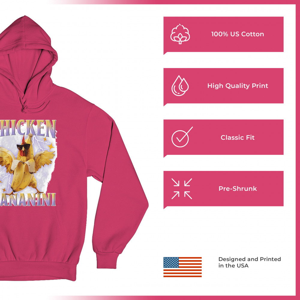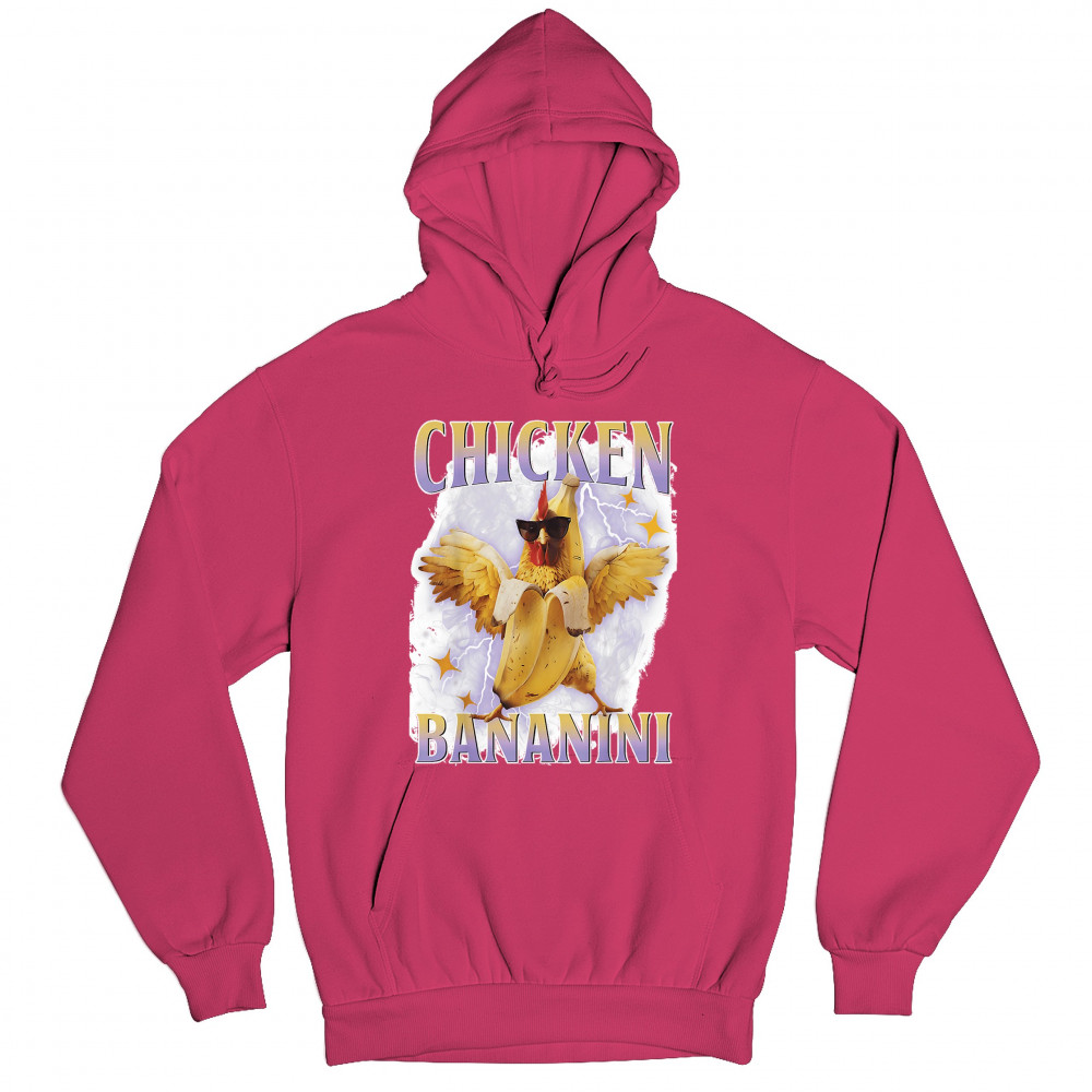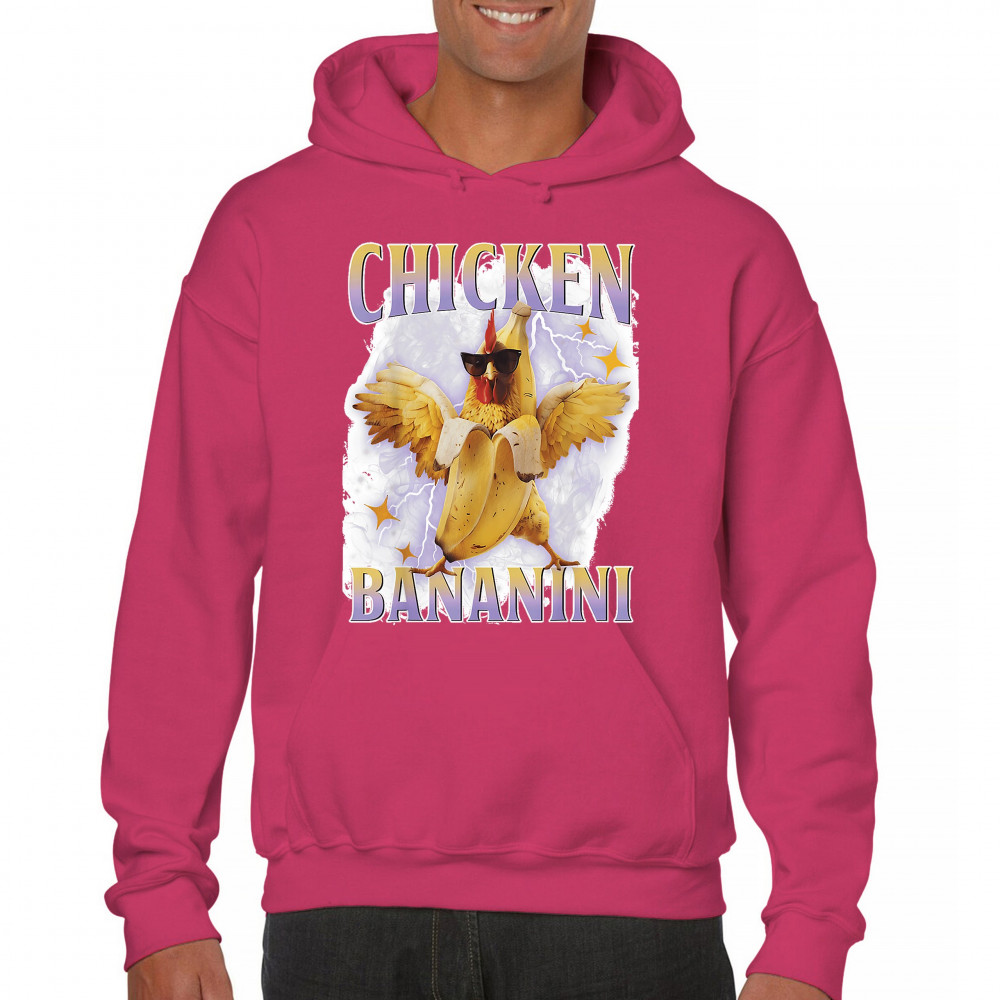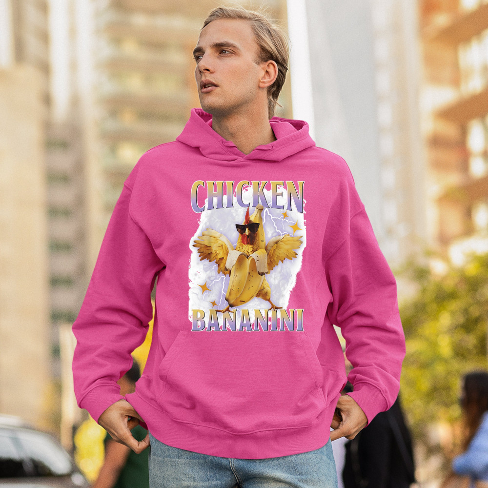 Chicken Bananini is meme absurdity with extra peel. Featuring a chicken emerging from a banana and rocking shades, this design blends cursed-core fashion, viral animal humor, Gen Z brainrot, and TikTok-style chaos. A must-have for fans of ironic mashups, surreal creatures, and internet-fueled nonsense.