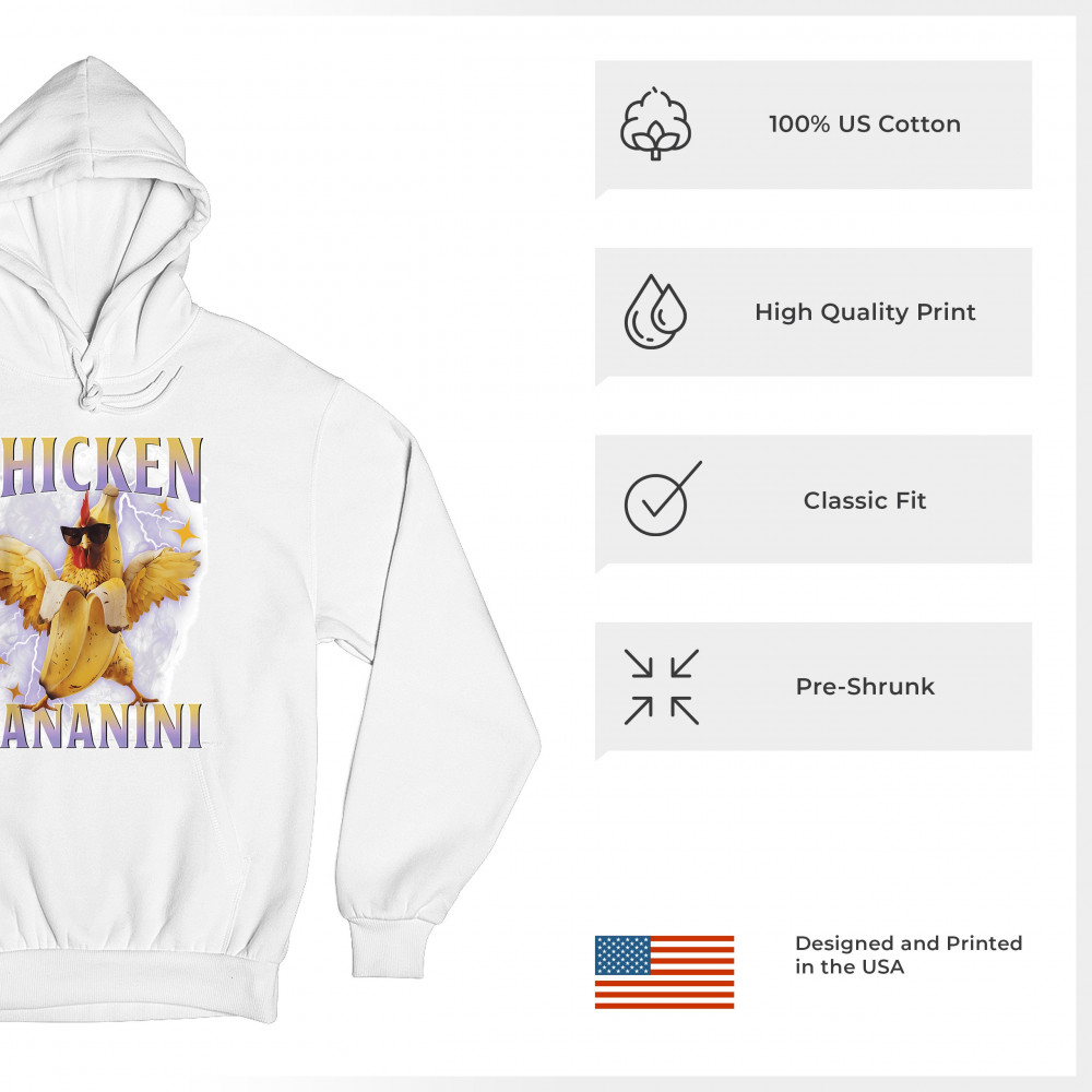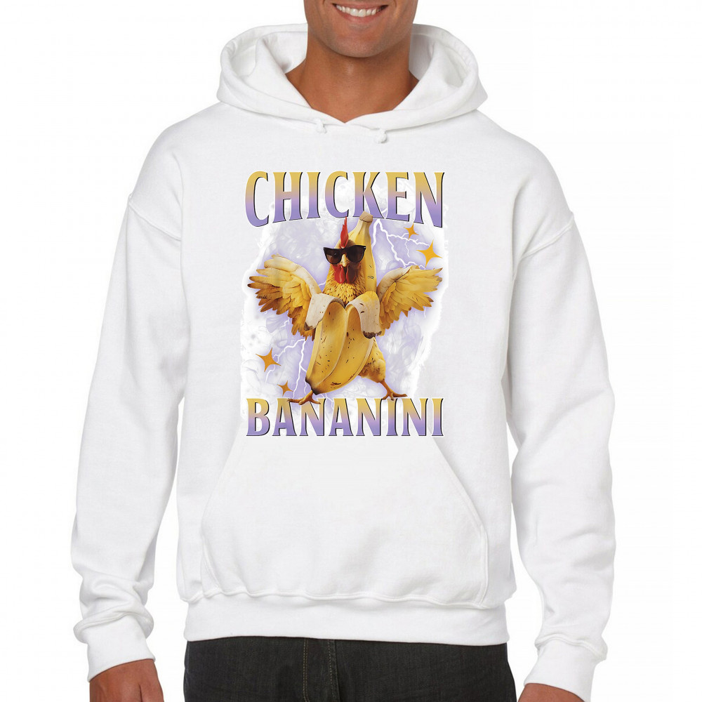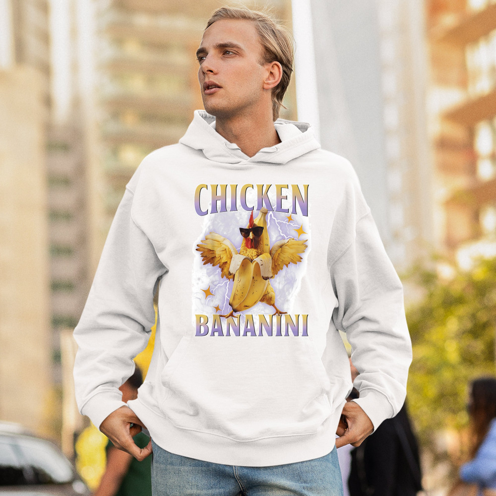 Chicken Bananini is meme absurdity with extra peel. Featuring a chicken emerging from a banana and rocking shades, this design blends cursed-core fashion, viral animal humor, Gen Z brainrot, and TikTok-style chaos. A must-have for fans of ironic mashups, surreal creatures, and internet-fueled nonsense.