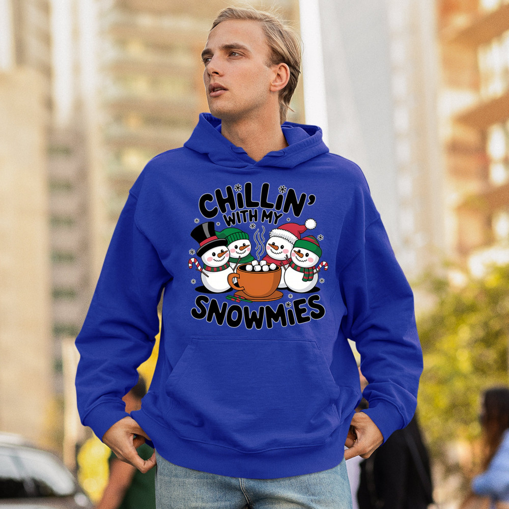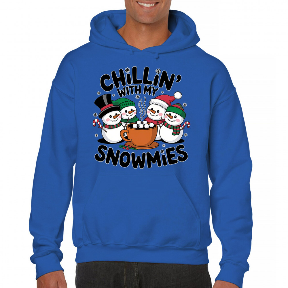 A cute and cheerful winter design showing happy snowmen sharing hot cocoa, perfect for Christmas gatherings, holiday events, seasonal photos, white-elephant gifting, festive family nights, winter celebrations, cozy weekend vibes, and fans of playful holiday humor. A fun graphic for anyone who loves bright and friendly Christmas styles.