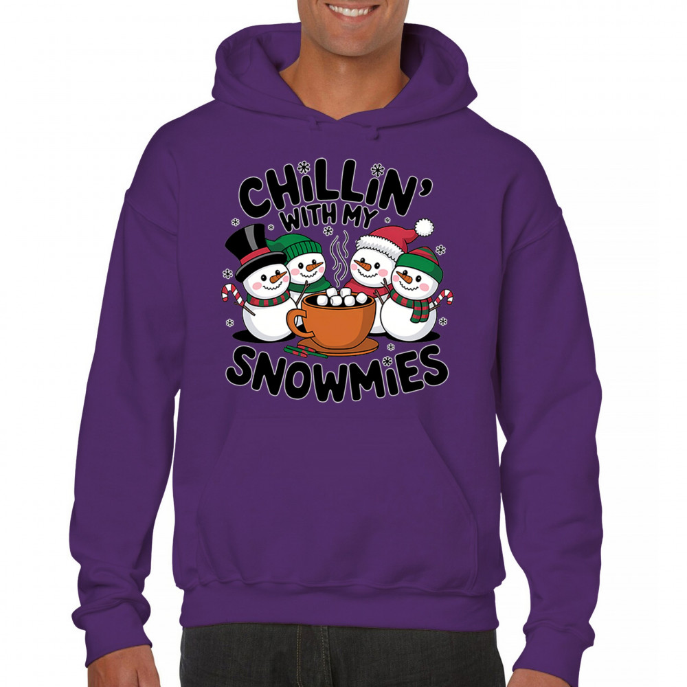 A cute and cheerful winter design showing happy snowmen sharing hot cocoa, perfect for Christmas gatherings, holiday events, seasonal photos, white-elephant gifting, festive family nights, winter celebrations, cozy weekend vibes, and fans of playful holiday humor. A fun graphic for anyone who loves bright and friendly Christmas styles.