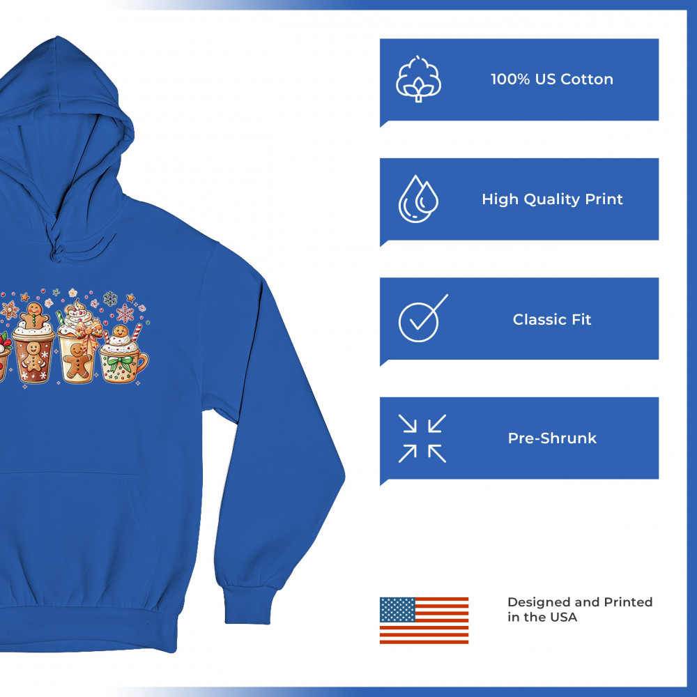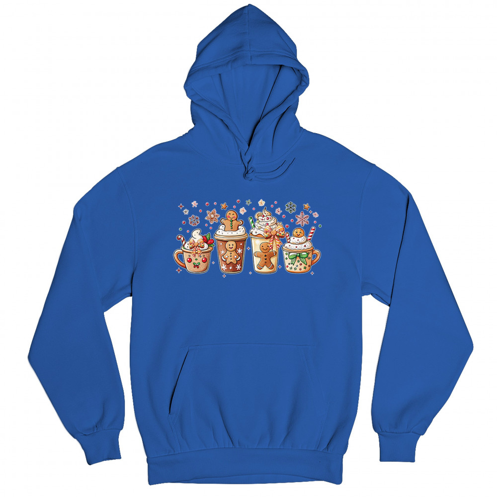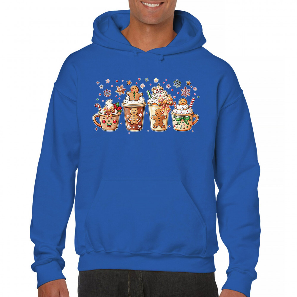 This cute Christmas drink design showcases gingerbread mugs, whipped cream, candy canes, sprinkles, and festive decorations for a warm winter aesthetic. Perfect for cocoa lovers, coffee fans, bakers, cozy holiday nights, gift exchanges, Christmas morning vibes, seasonal parties, and anyone who loves adorable dessert-inspired holiday art.