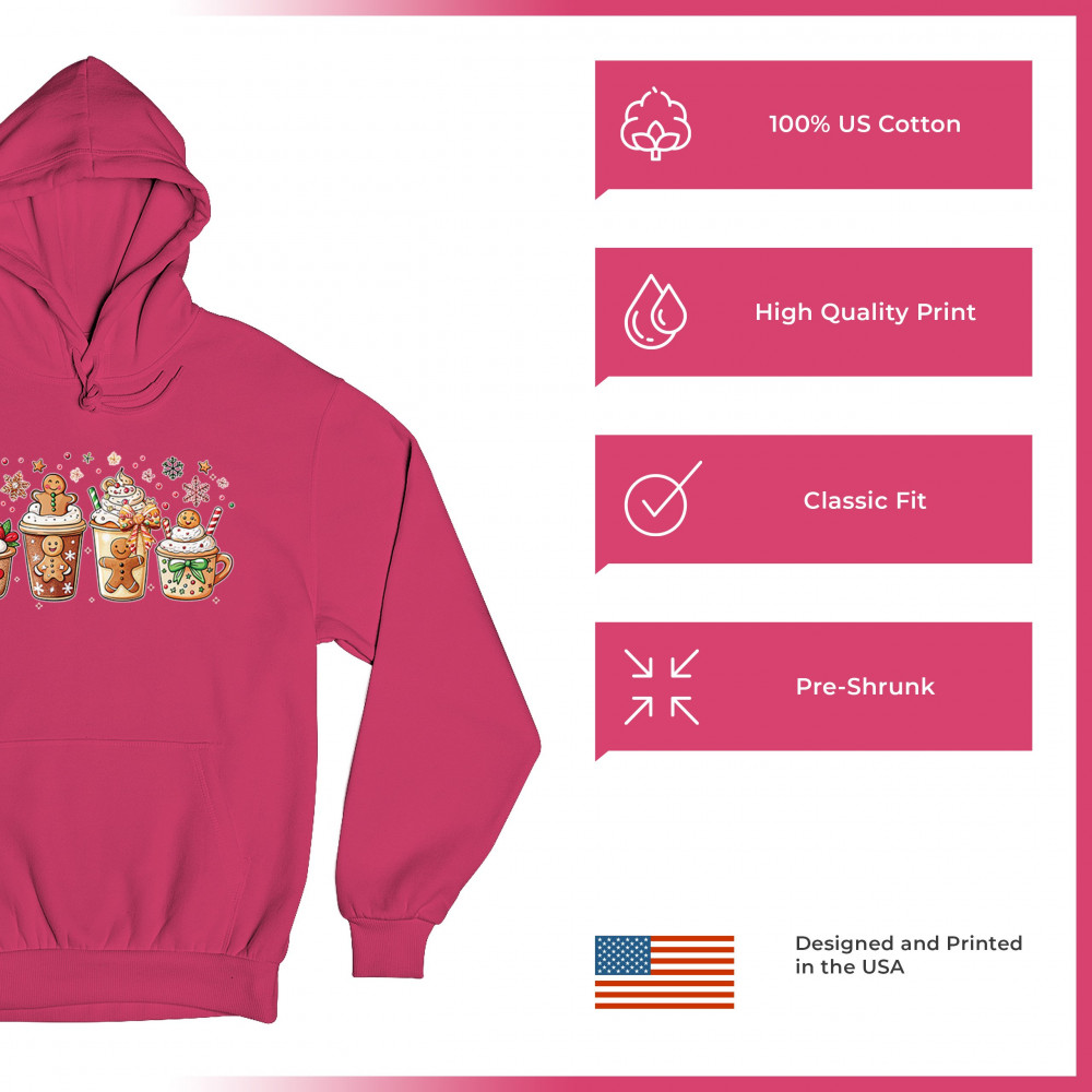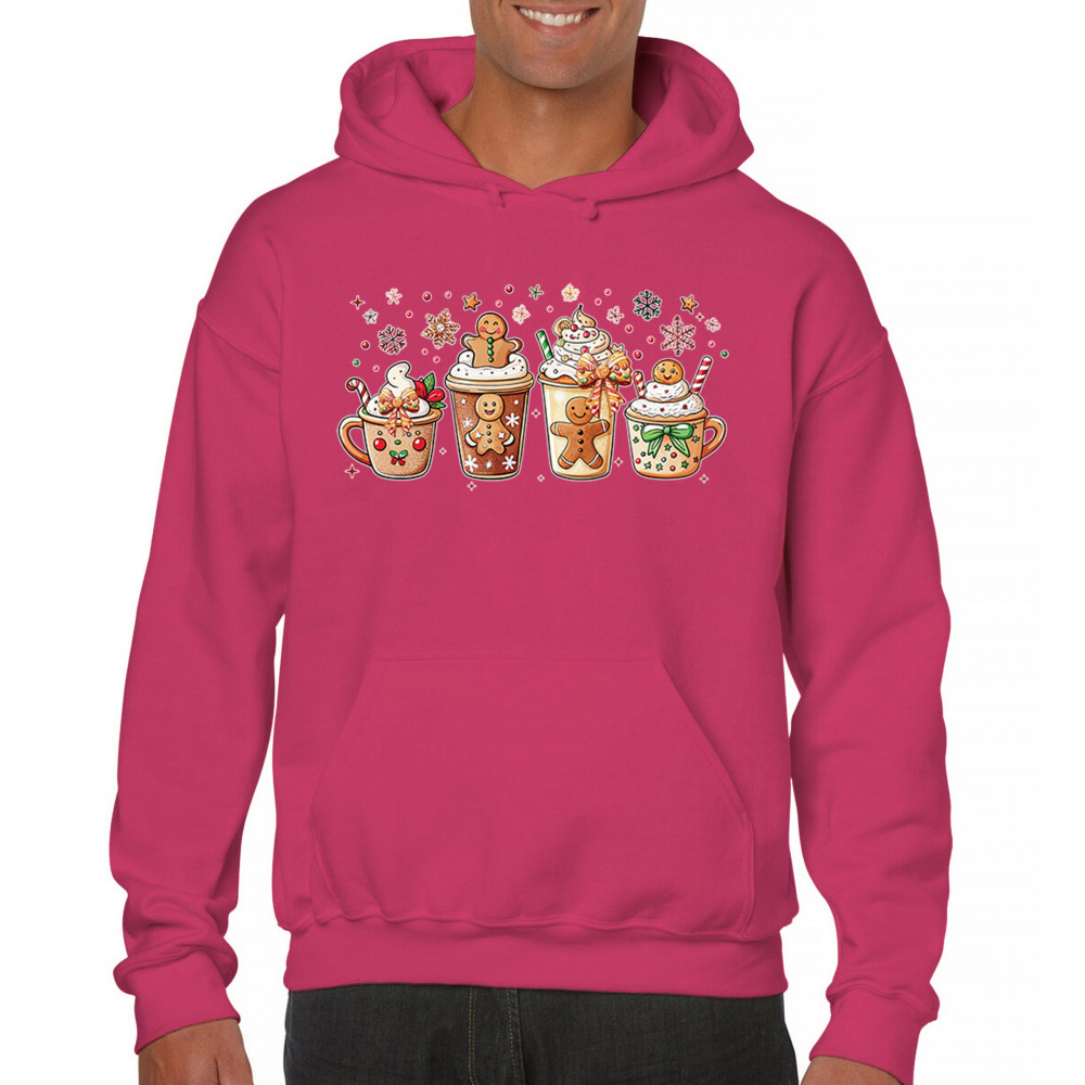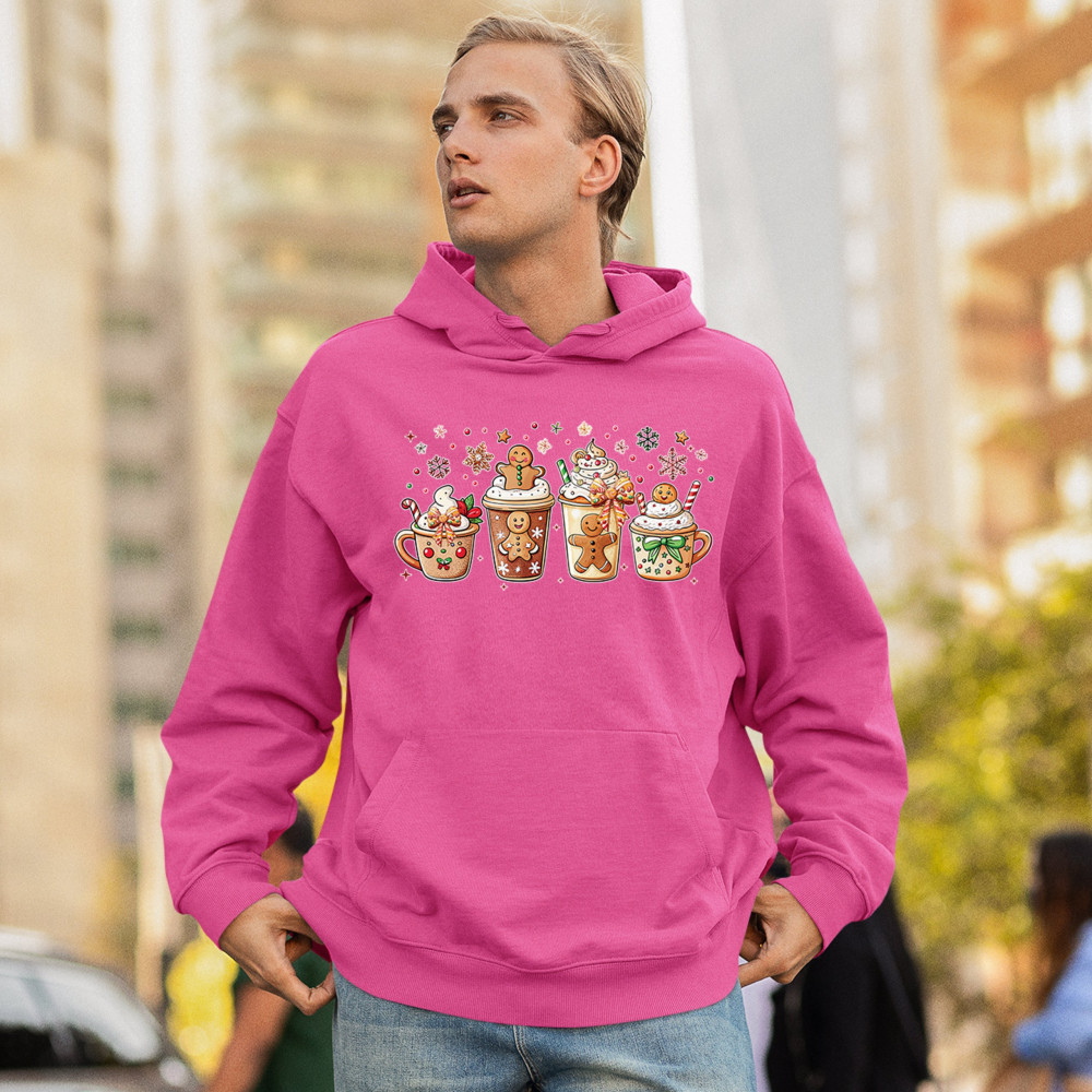 This cute Christmas drink design showcases gingerbread mugs, whipped cream, candy canes, sprinkles, and festive decorations for a warm winter aesthetic. Perfect for cocoa lovers, coffee fans, bakers, cozy holiday nights, gift exchanges, Christmas morning vibes, seasonal parties, and anyone who loves adorable dessert-inspired holiday art.