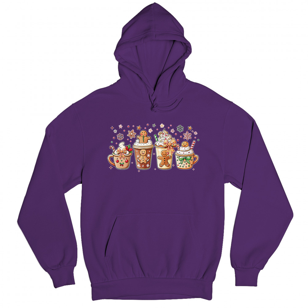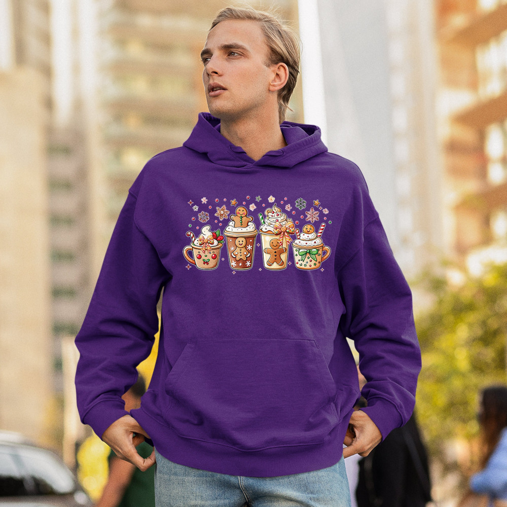 This cute Christmas drink design showcases gingerbread mugs, whipped cream, candy canes, sprinkles, and festive decorations for a warm winter aesthetic. Perfect for cocoa lovers, coffee fans, bakers, cozy holiday nights, gift exchanges, Christmas morning vibes, seasonal parties, and anyone who loves adorable dessert-inspired holiday art.