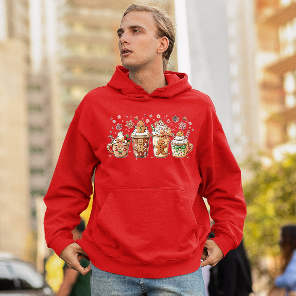 This cute Christmas drink design showcases gingerbread mugs, whipped cream, candy canes, sprinkles, and festive decorations for a warm winter aesthetic. Perfect for cocoa lovers, coffee fans, bakers, cozy holiday nights, gift exchanges, Christmas morning vibes, seasonal parties, and anyone who loves adorable dessert-inspired holiday art.