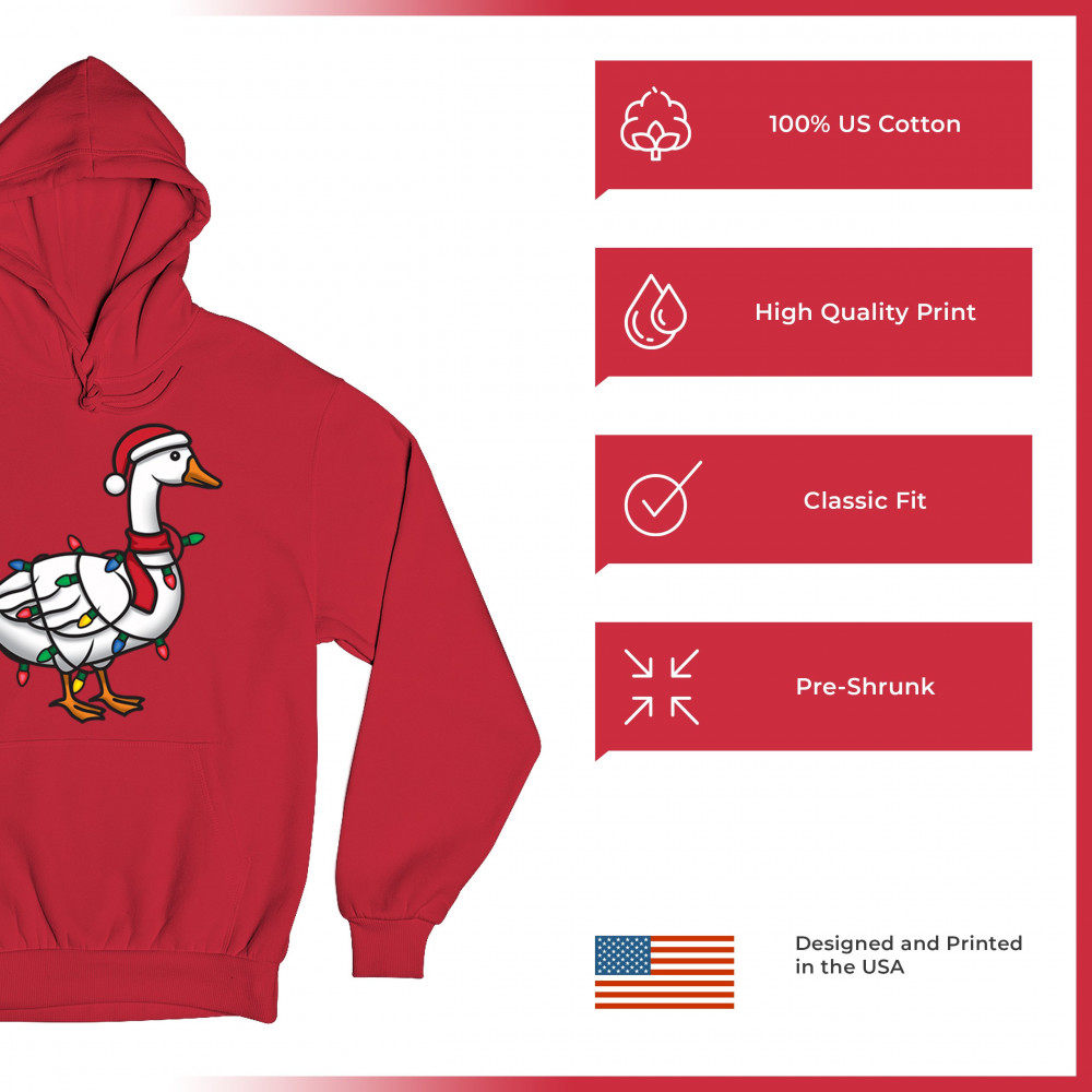 Funny Christmas goose wrapped in lights with festive humor, perfect for holiday gifting, white elephant exchanges, and cheerful seasonal style.