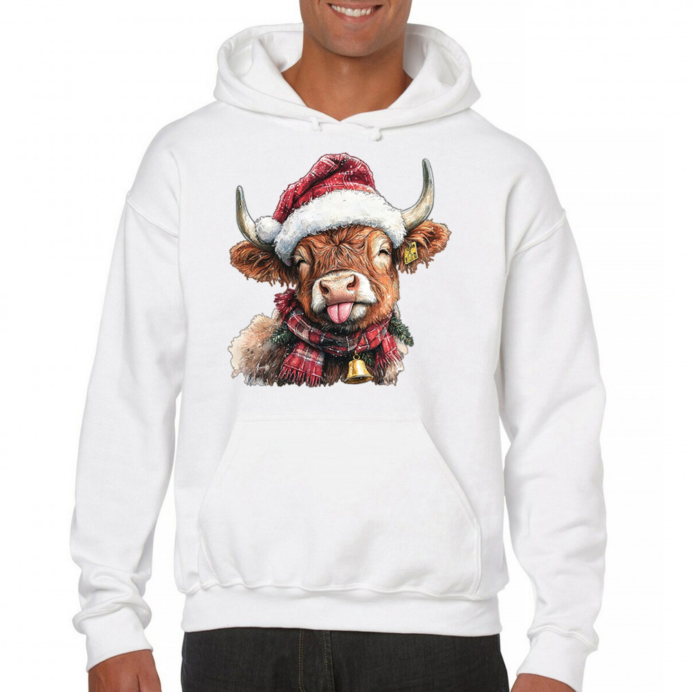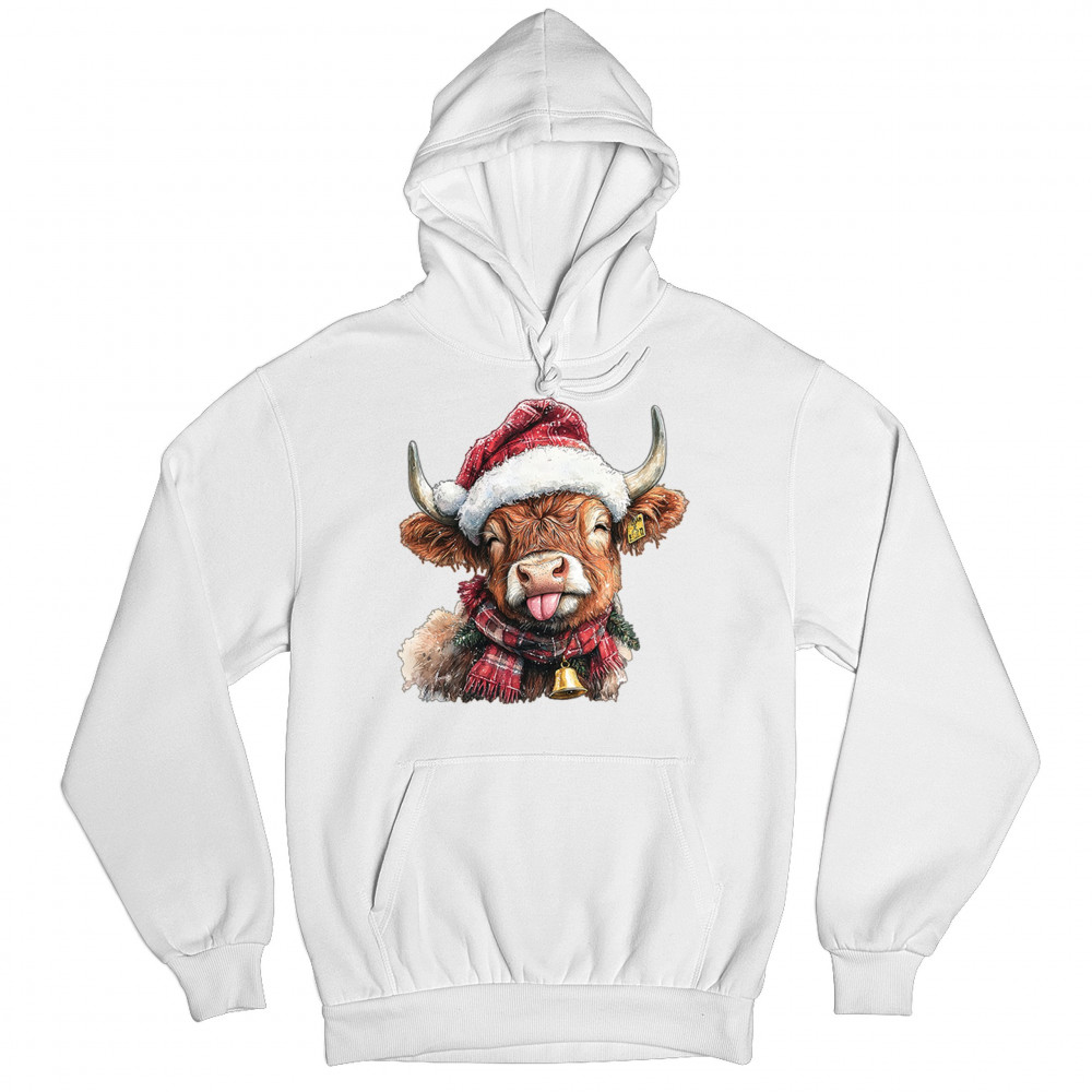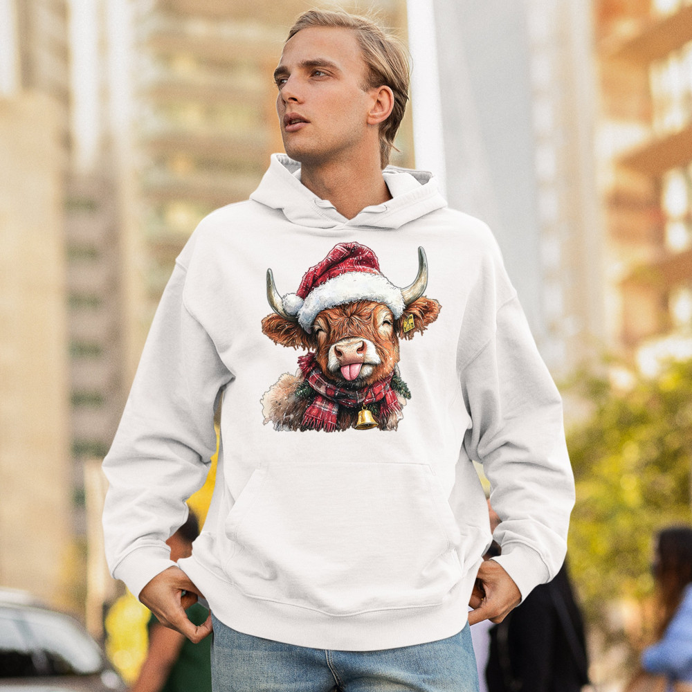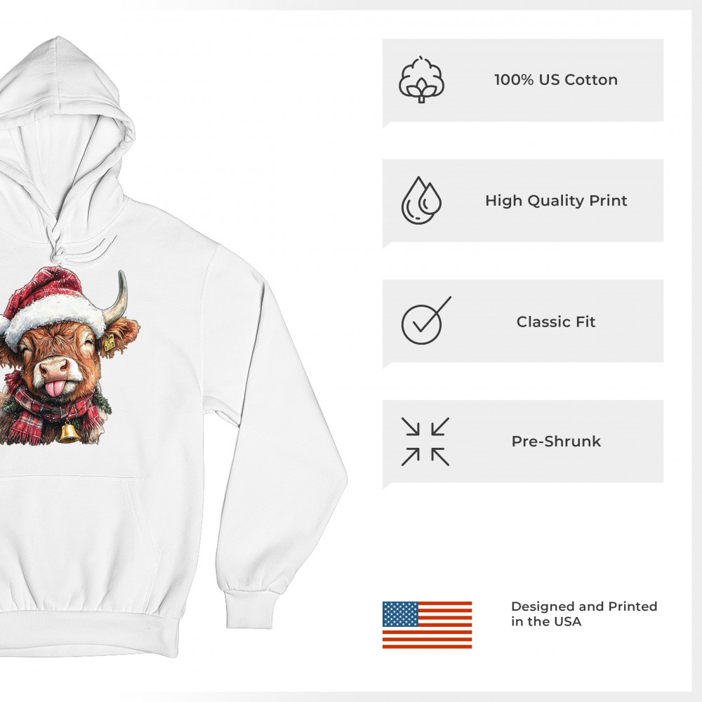 Christmas Highland Cow shirt – rustic holiday design with Santa hat cow, farmhouse holiday humor, country Christmas vibes, and festive livestock art.