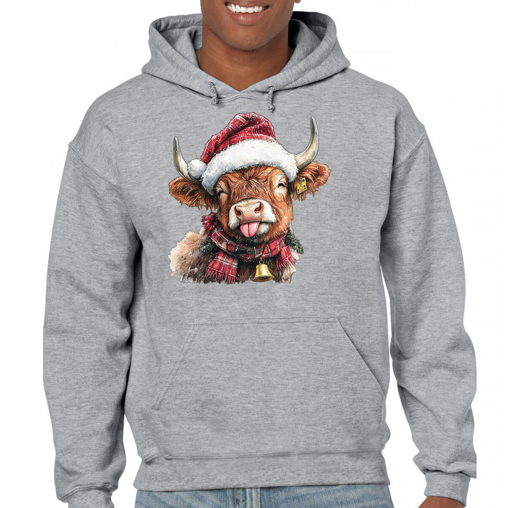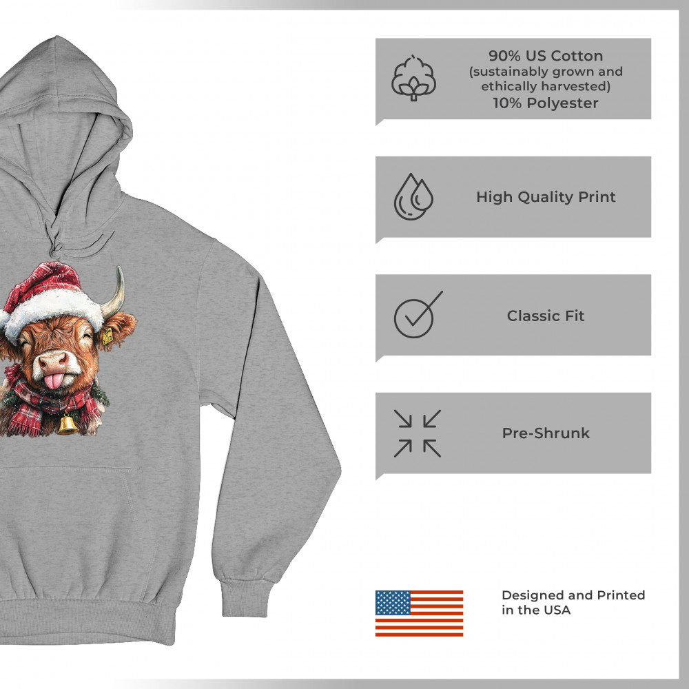 Christmas Highland Cow shirt – rustic holiday design with Santa hat cow, farmhouse holiday humor, country Christmas vibes, and festive livestock art.