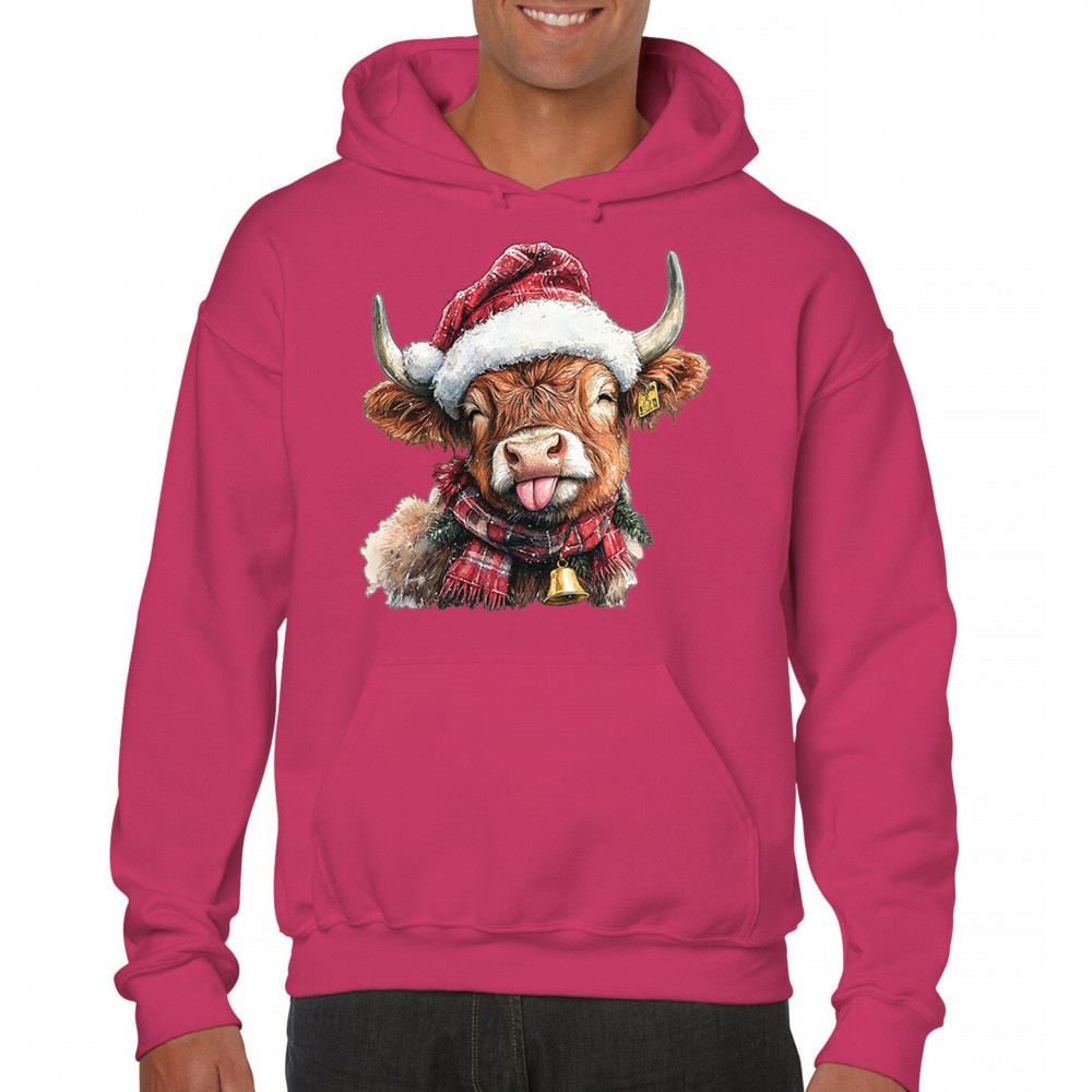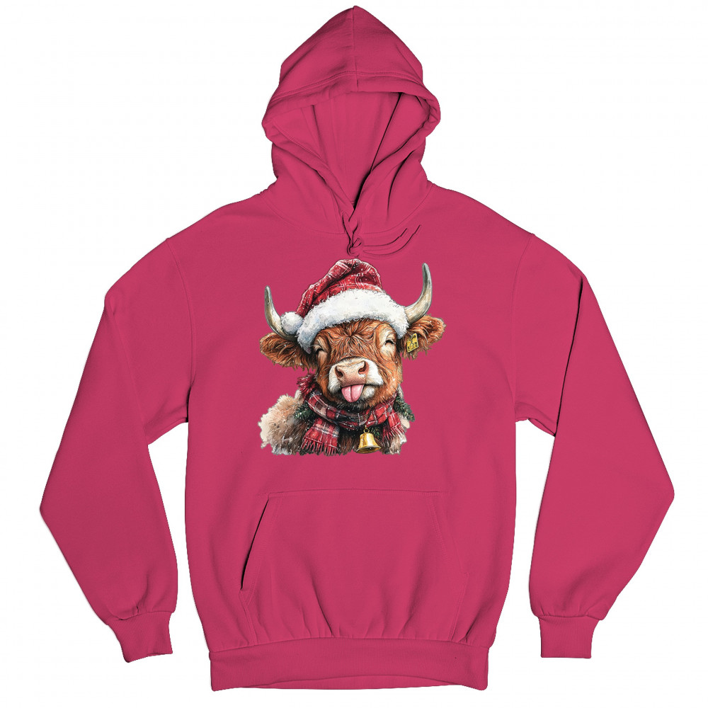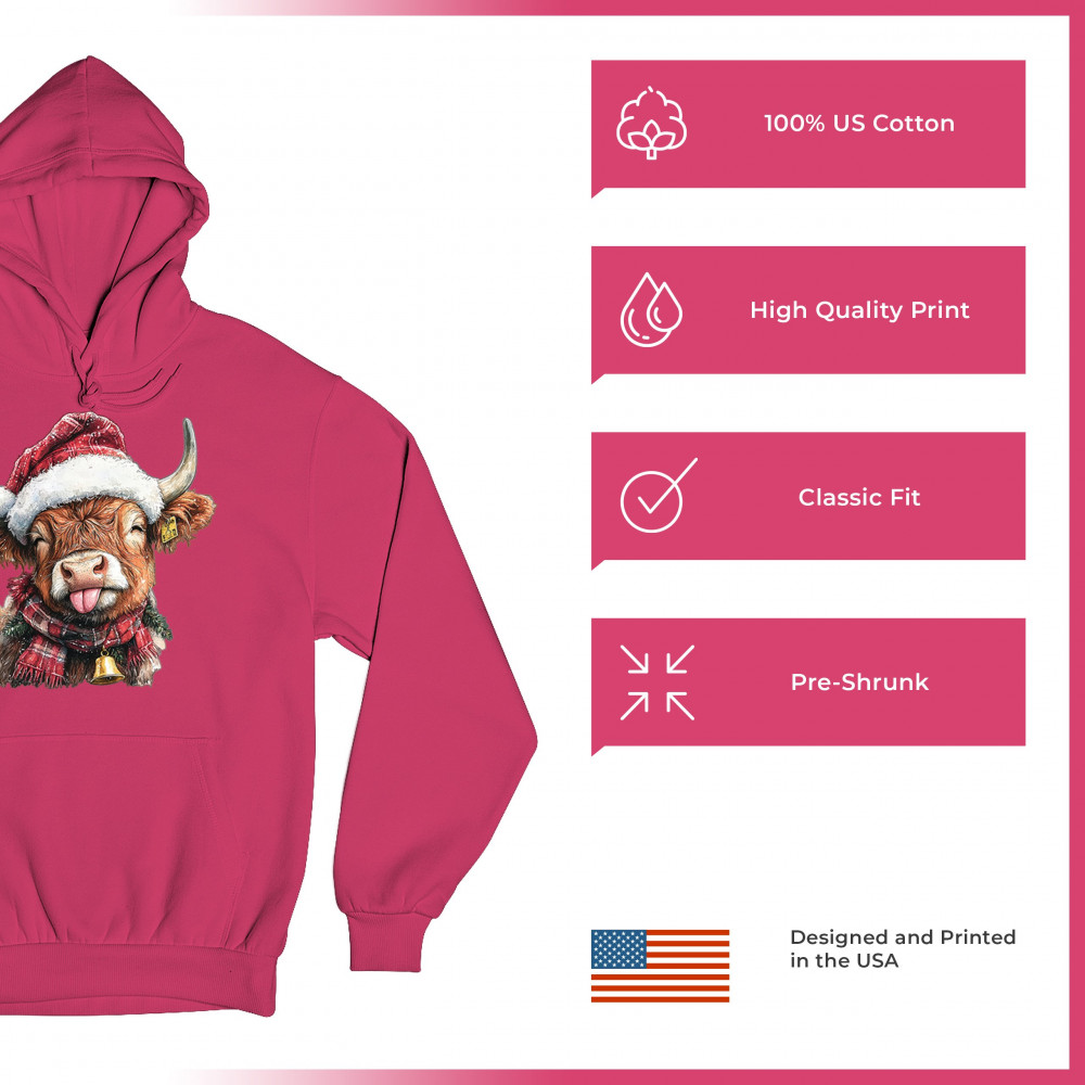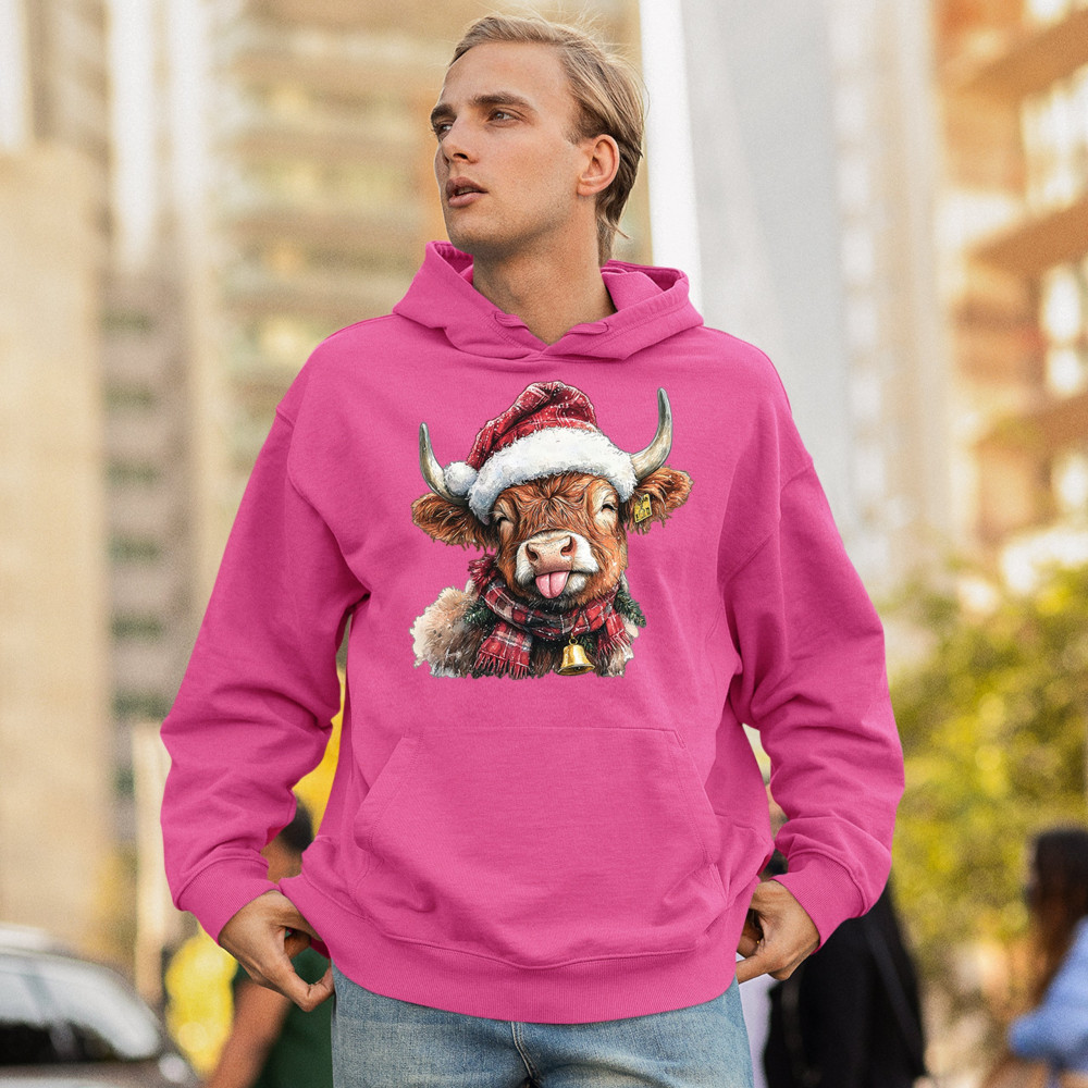 Christmas Highland Cow shirt – rustic holiday design with Santa hat cow, farmhouse holiday humor, country Christmas vibes, and festive livestock art.