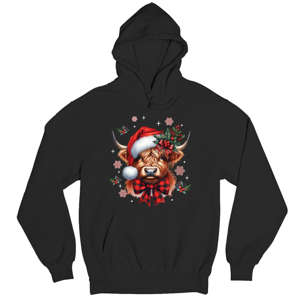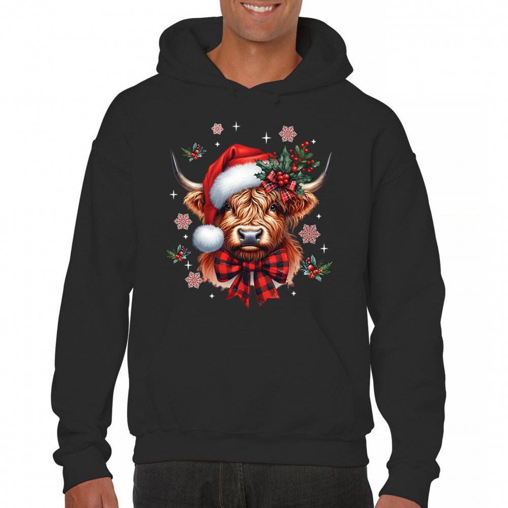 CHRISTMAS HOLLY COW unisex hoodie festive xmas holiday season spirit black
