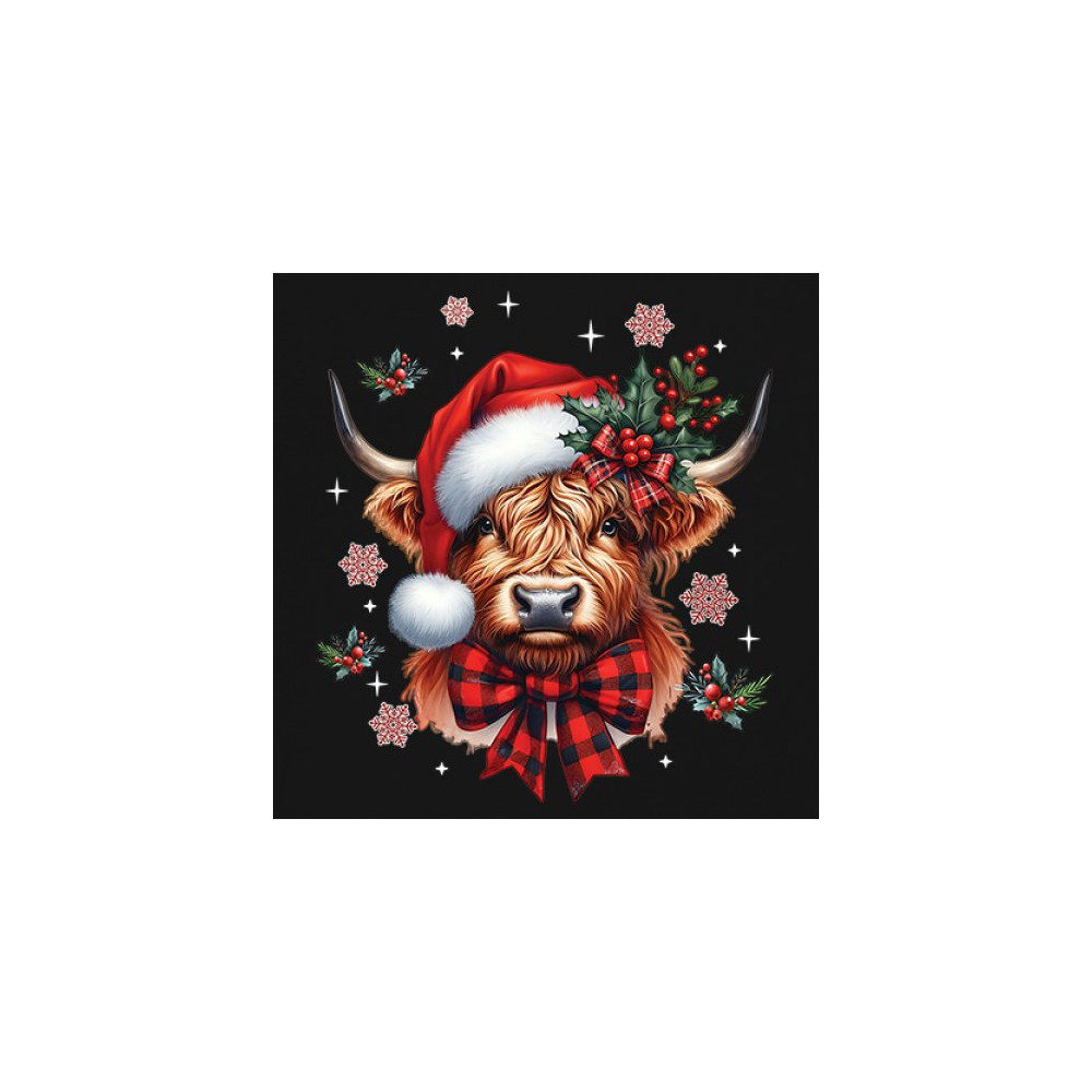 This adorable Highland cow Christmas design blends farmhouse charm, rustic holiday style, and classic winter décor. With a Santa hat, plaid bow, holly, and snowflakes, it delivers warm festive energy that fits perfectly with country décor, woodland themes, cozy farm aesthetics, holiday gifting, and seasonal celebrations. Ideal for fans of cute animals and cheerful Christmas graphics.c