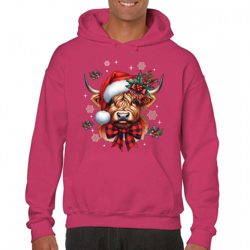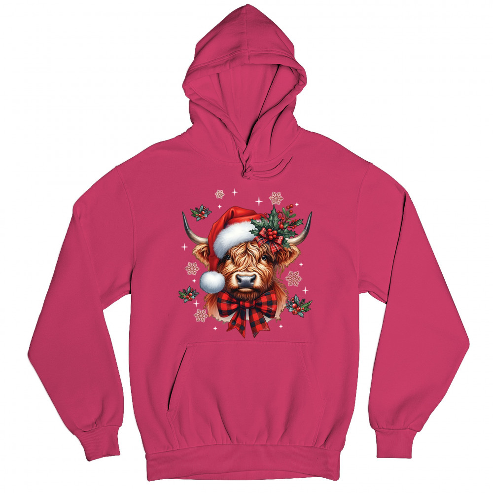 This adorable Highland cow Christmas design blends farmhouse charm, rustic holiday style, and classic winter décor. With a Santa hat, plaid bow, holly, and snowflakes, it delivers warm festive energy that fits perfectly with country décor, woodland themes, cozy farm aesthetics, holiday gifting, and seasonal celebrations. Ideal for fans of cute animals and cheerful Christmas graphics.c