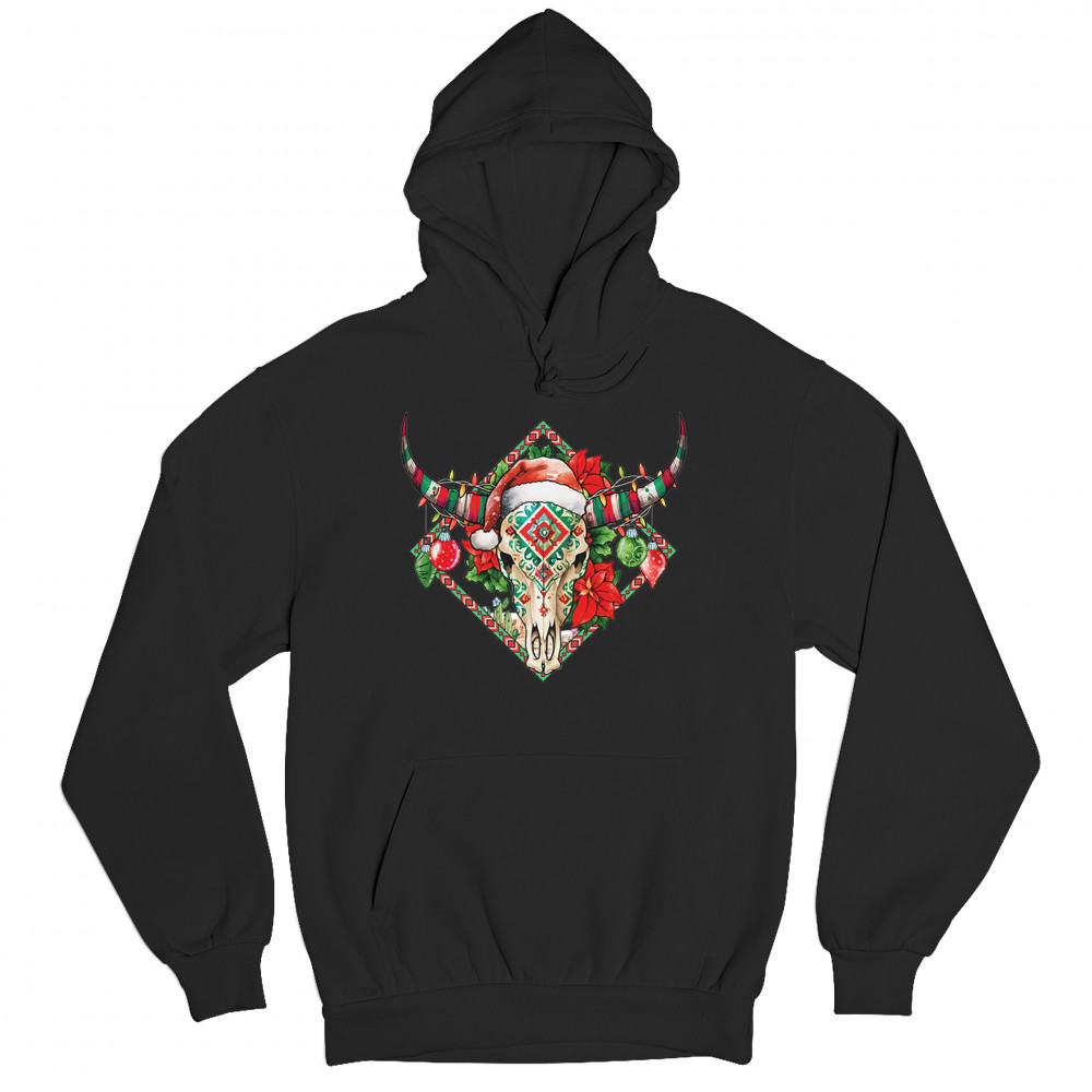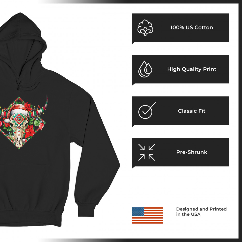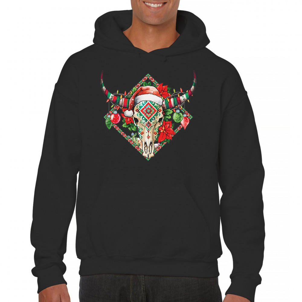 Blend Southwestern charm with holiday cheer! This vibrant skull design with poinsettias and ornaments is perfect for festive parties and unique gifts!