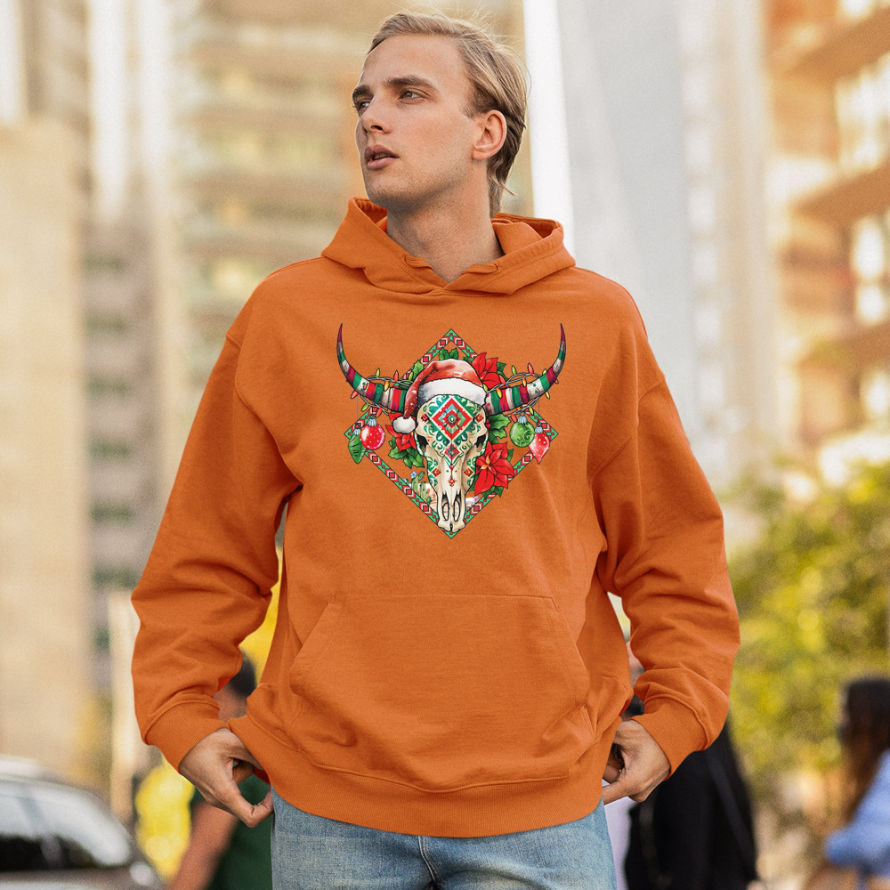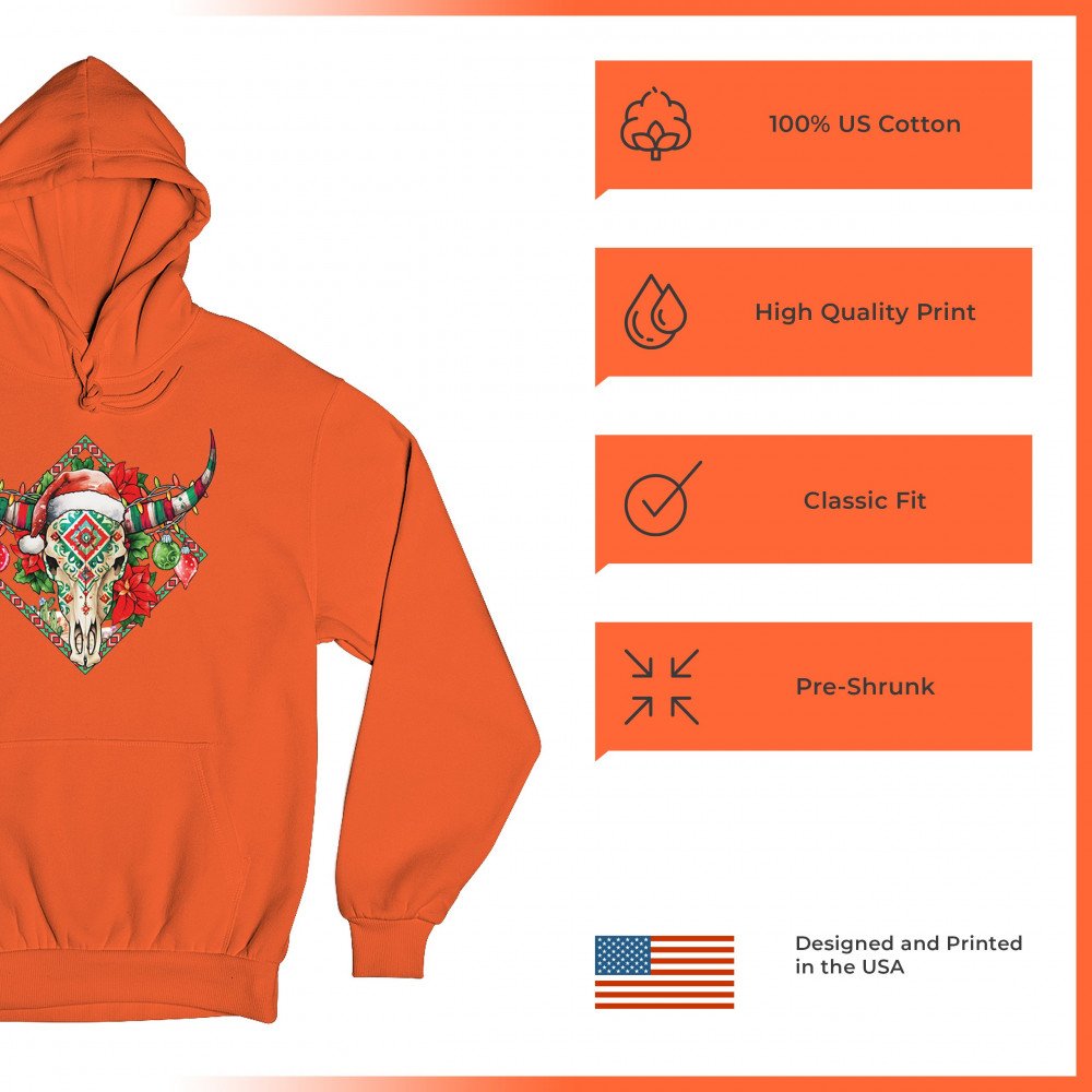 Blend Southwestern charm with holiday cheer! This vibrant skull design with poinsettias and ornaments is perfect for festive parties and unique gifts!