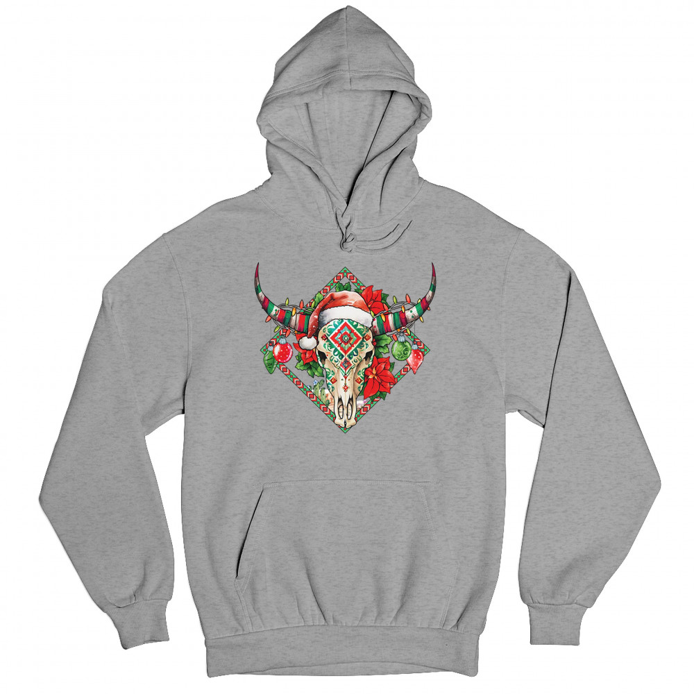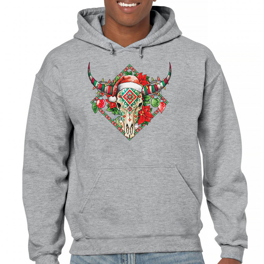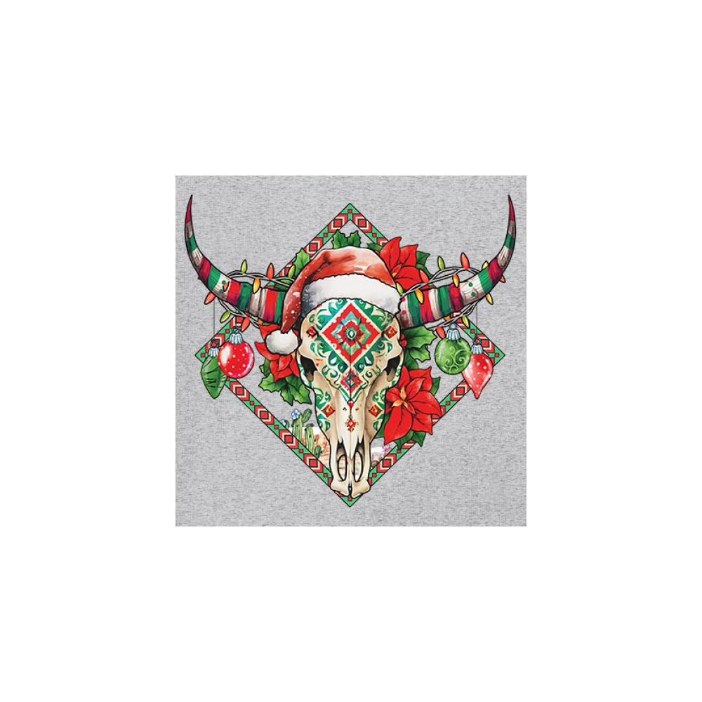 Blend Southwestern charm with holiday cheer! This vibrant skull design with poinsettias and ornaments is perfect for festive parties and unique gifts!