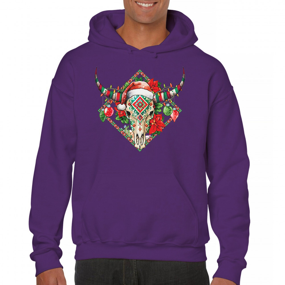 Blend Southwestern charm with holiday cheer! This vibrant skull design with poinsettias and ornaments is perfect for festive parties and unique gifts!