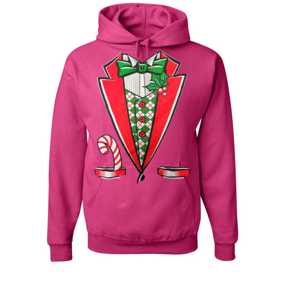CHRISTMAS TUXEDO hoodie funny xmas santa elf sweatshirt hot pink