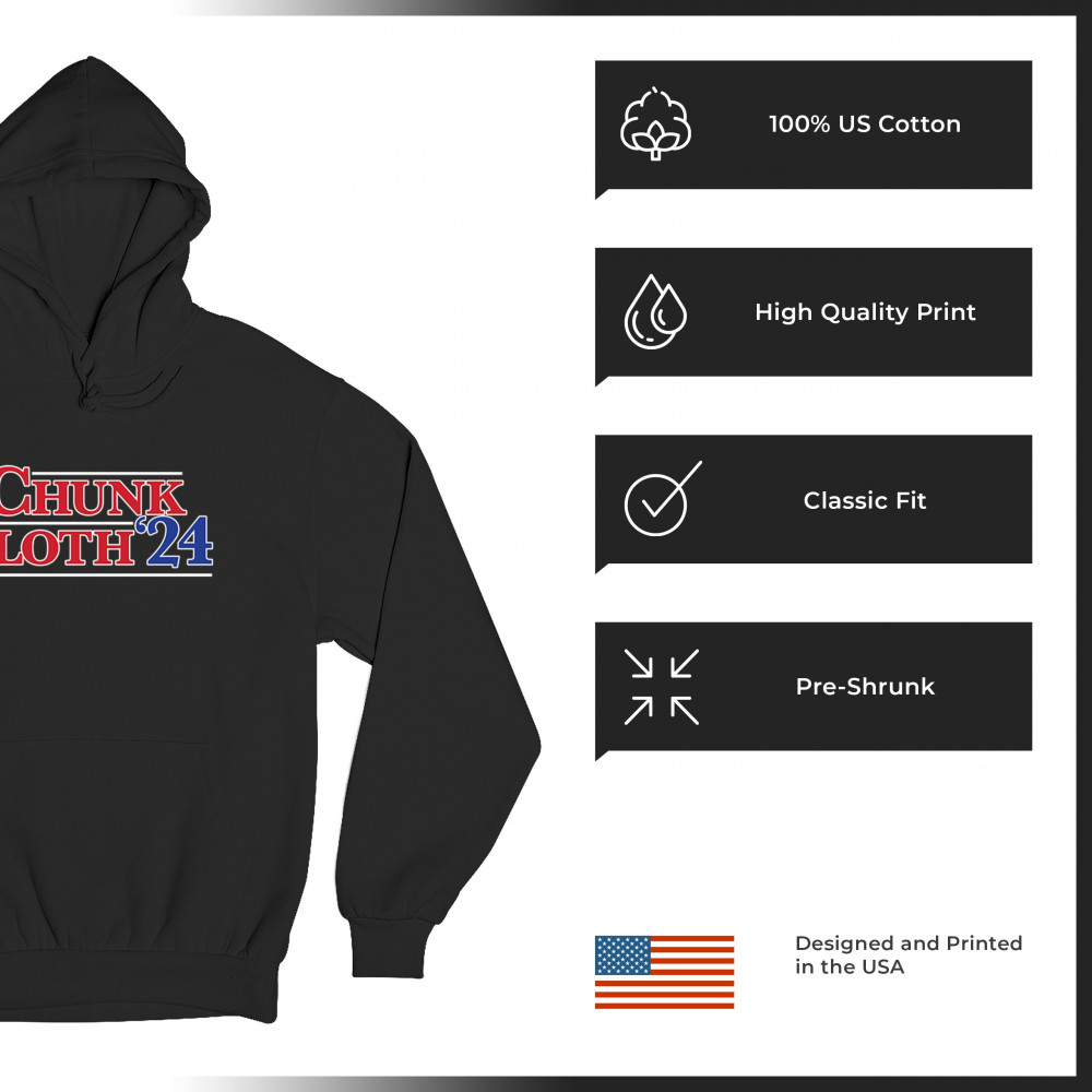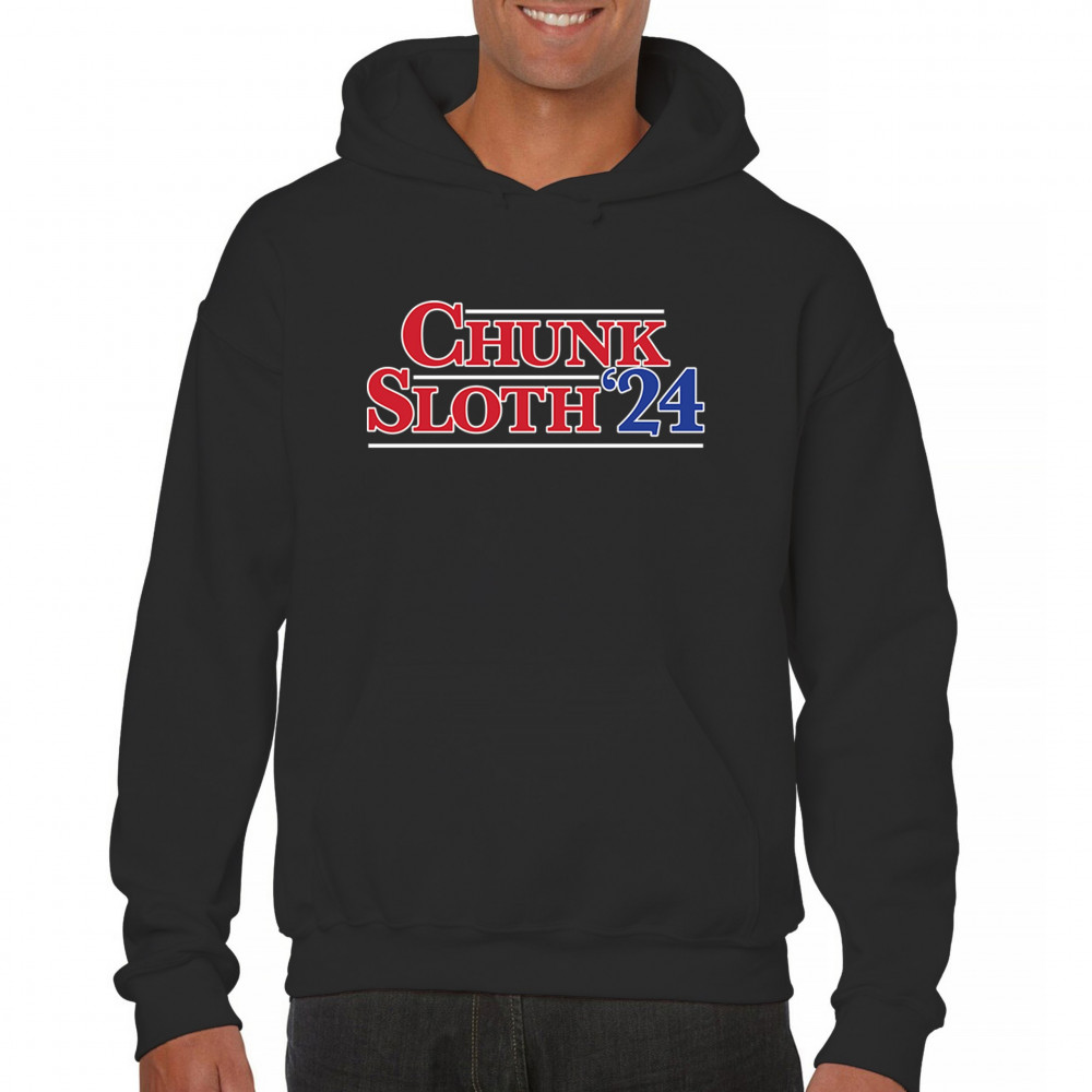 Celebrate 80s nostalgia and political humor with our Chunk and Sloth '24 design. Perfect for casual wear, movie nights, and themed parties. Durable and stylish.