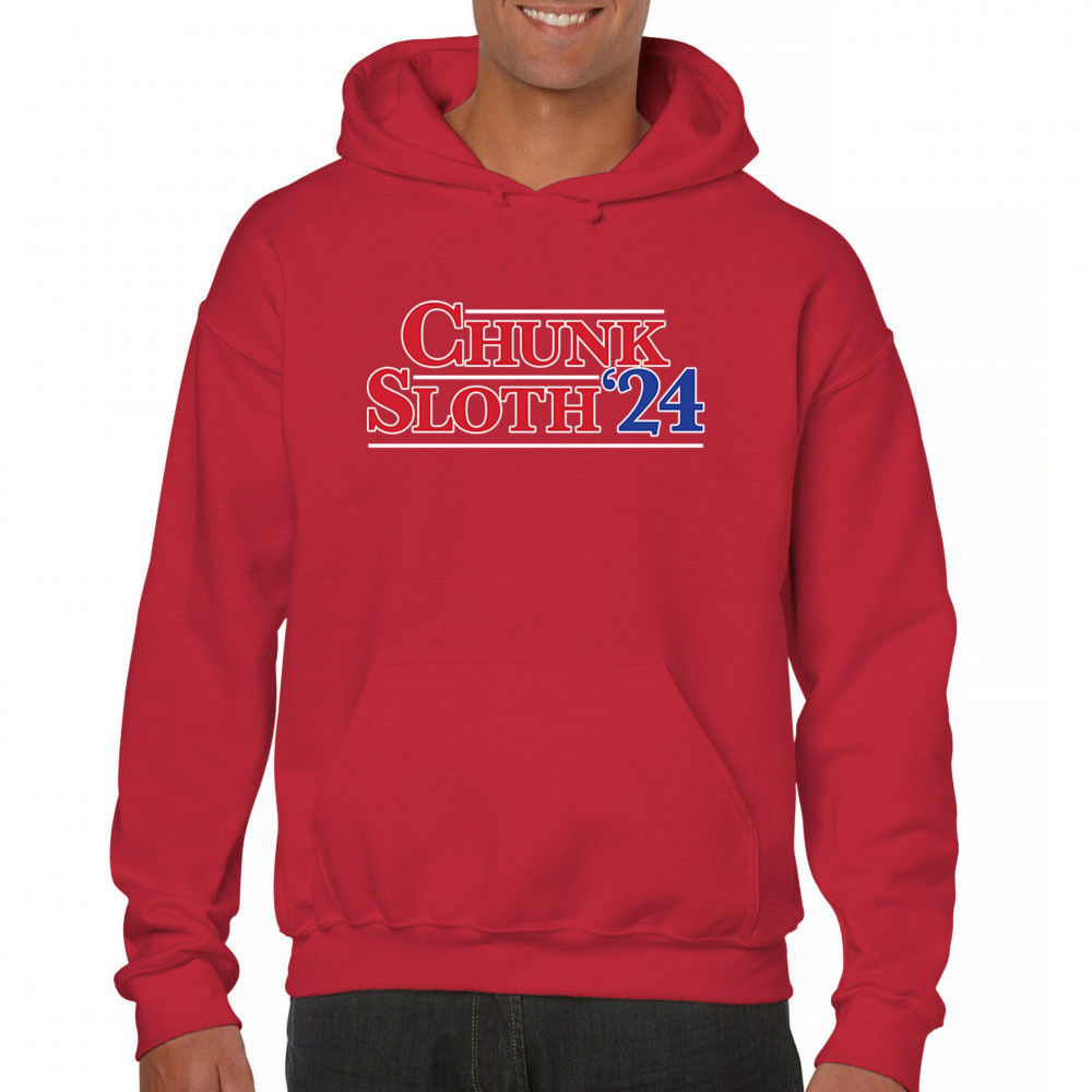 Celebrate 80s nostalgia and political humor with our Chunk and Sloth '24 design. Perfect for casual wear, movie nights, and themed parties. Durable and stylish.