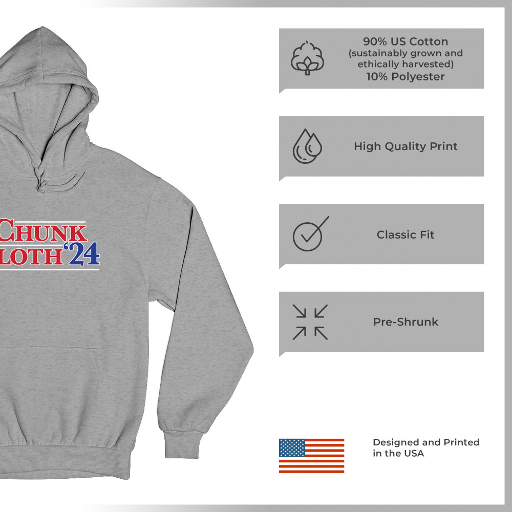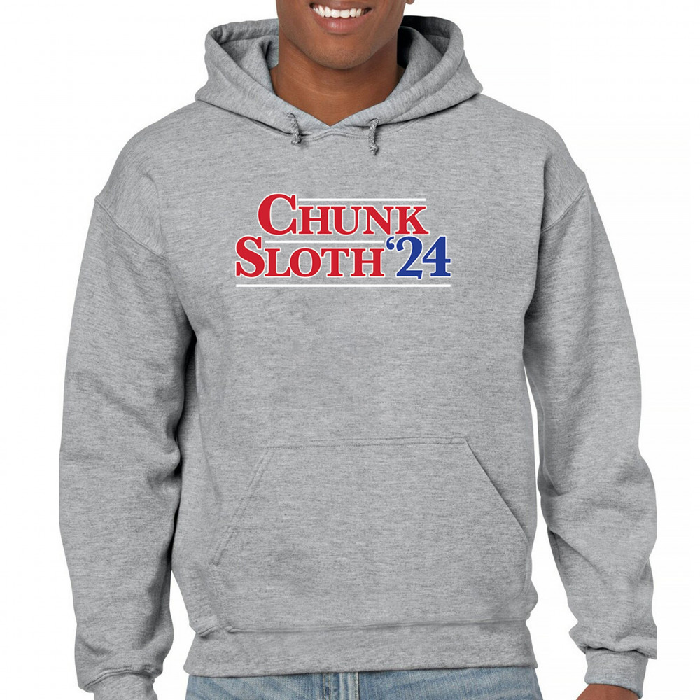 Celebrate 80s nostalgia and political humor with our Chunk and Sloth '24 design. Perfect for casual wear, movie nights, and themed parties. Durable and stylish.