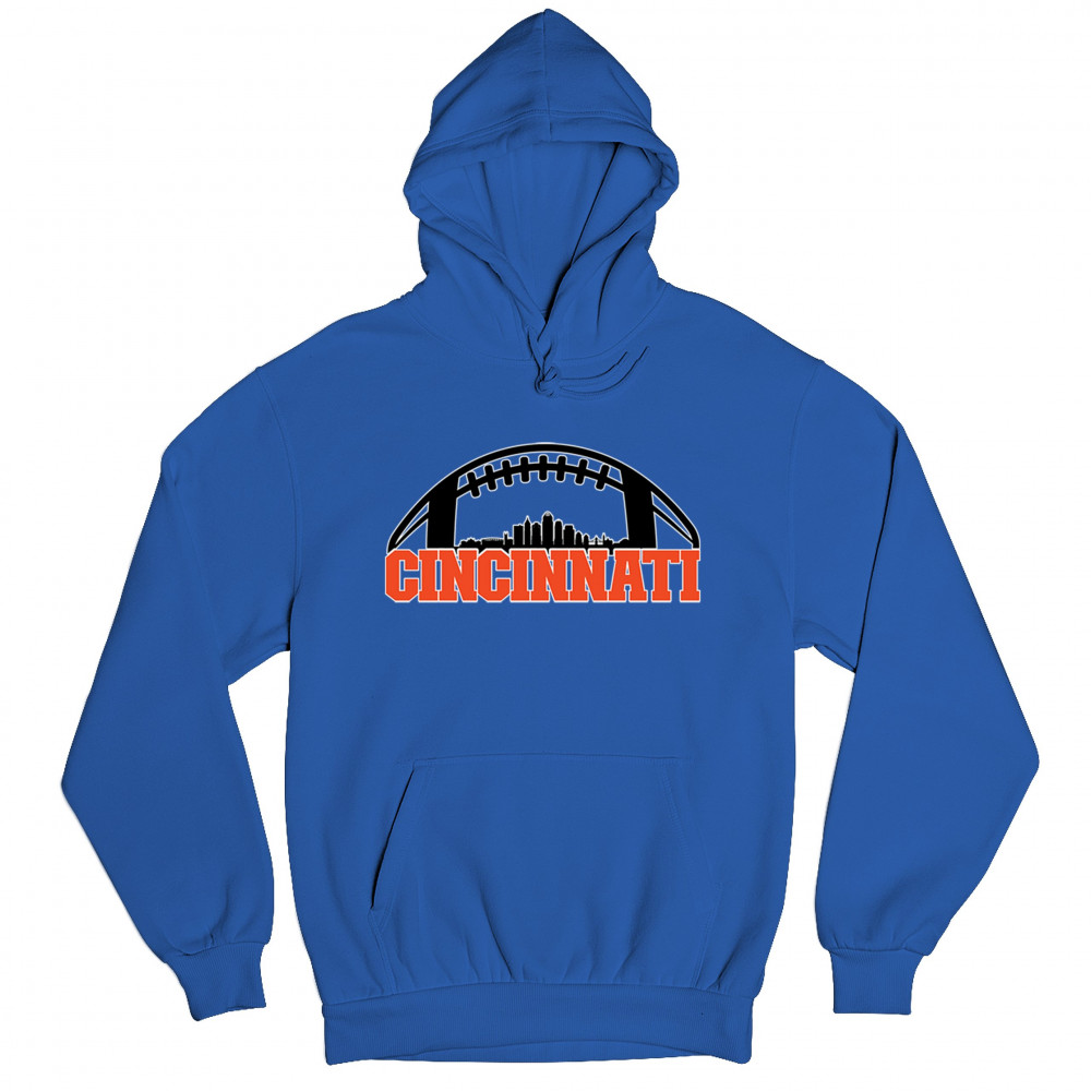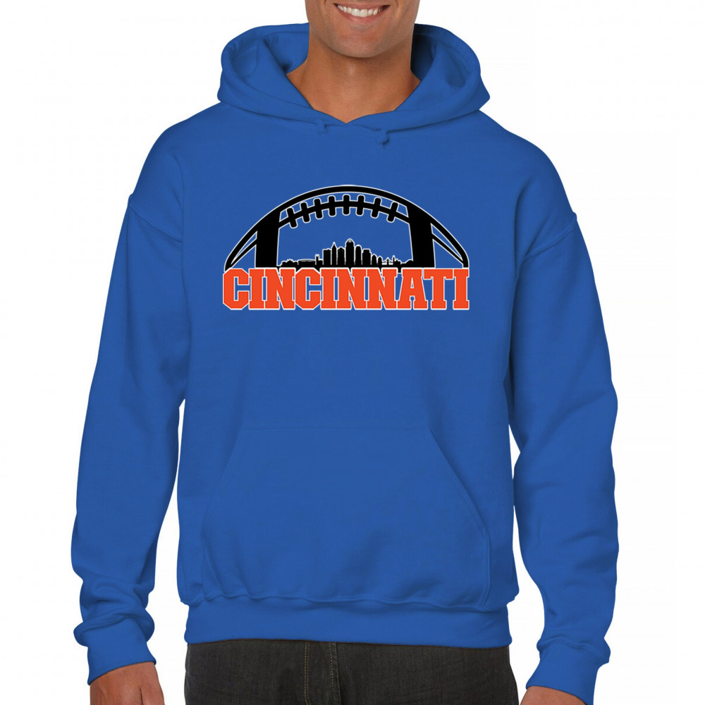 Discover the perfect blend of football passion and Cincinnati pride with this eye-catching design. Featuring the Queen City skyline under a bold football arch, this graphic is ideal for fans cheering on their team or celebrating their love for the city. Whether at a tailgate, game, or casual outing, this design lets you show your loyalty in style. A thoughtful gift for Cincinnati football enthusiasts!