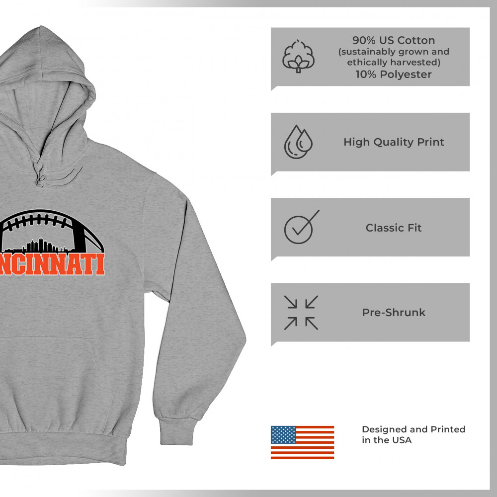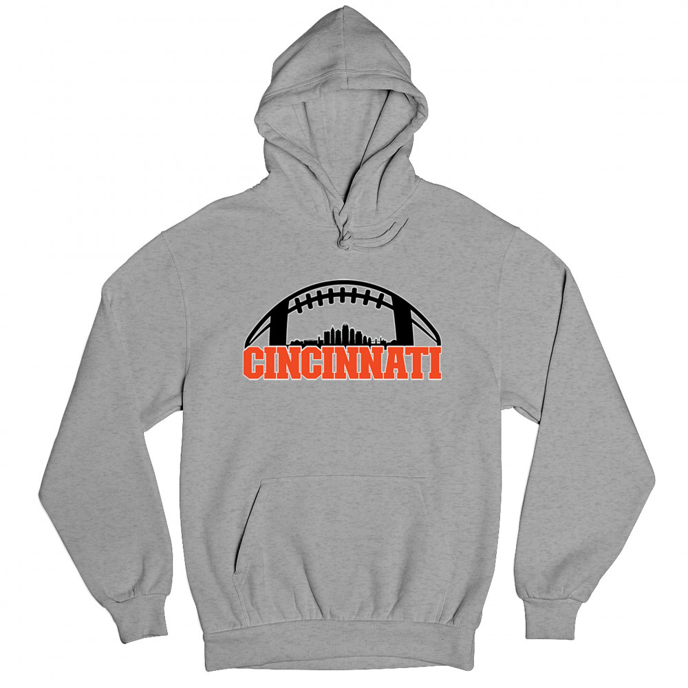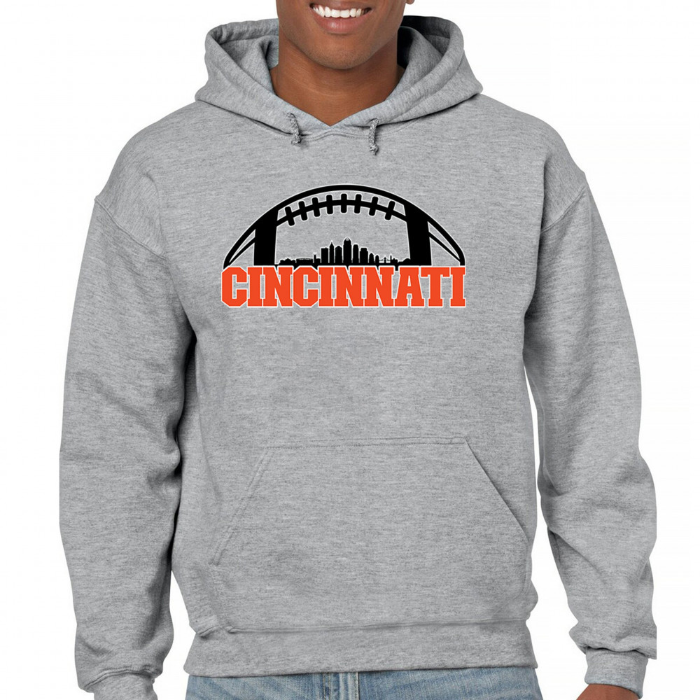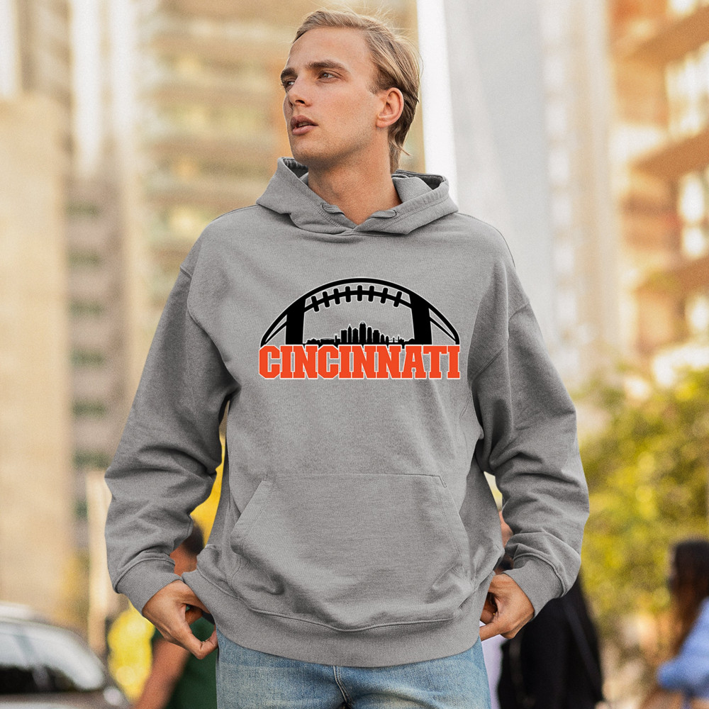 Celebrate Cincinnati and football with this bold skyline design under a football arch. Perfect for fans, tailgates, and game days!