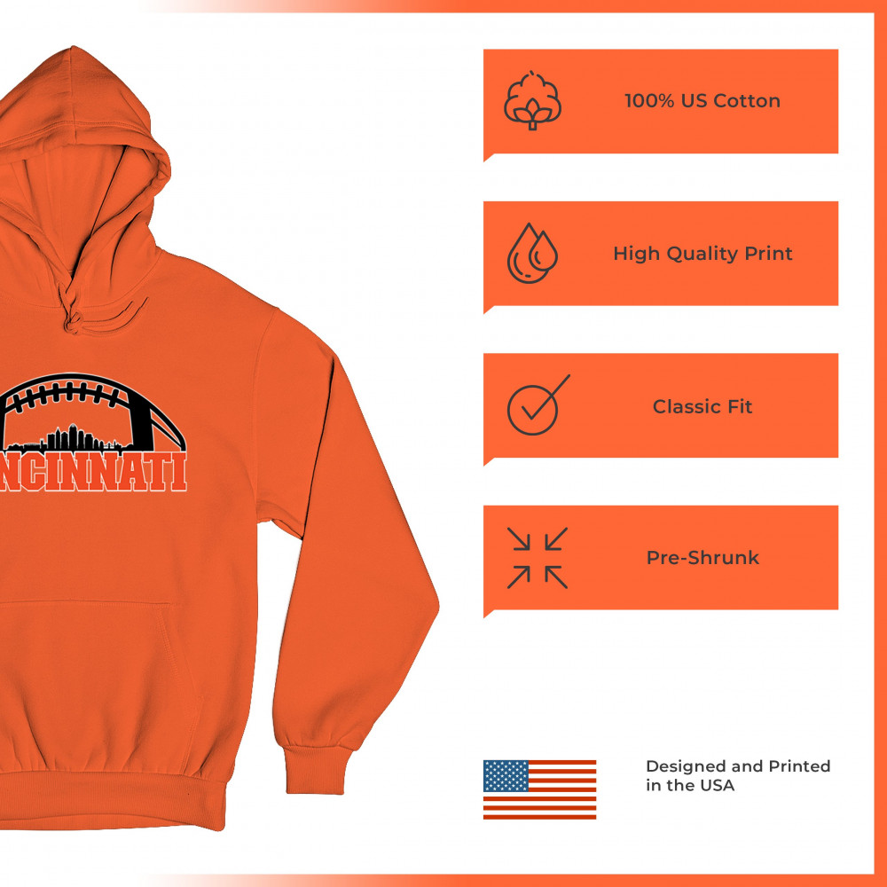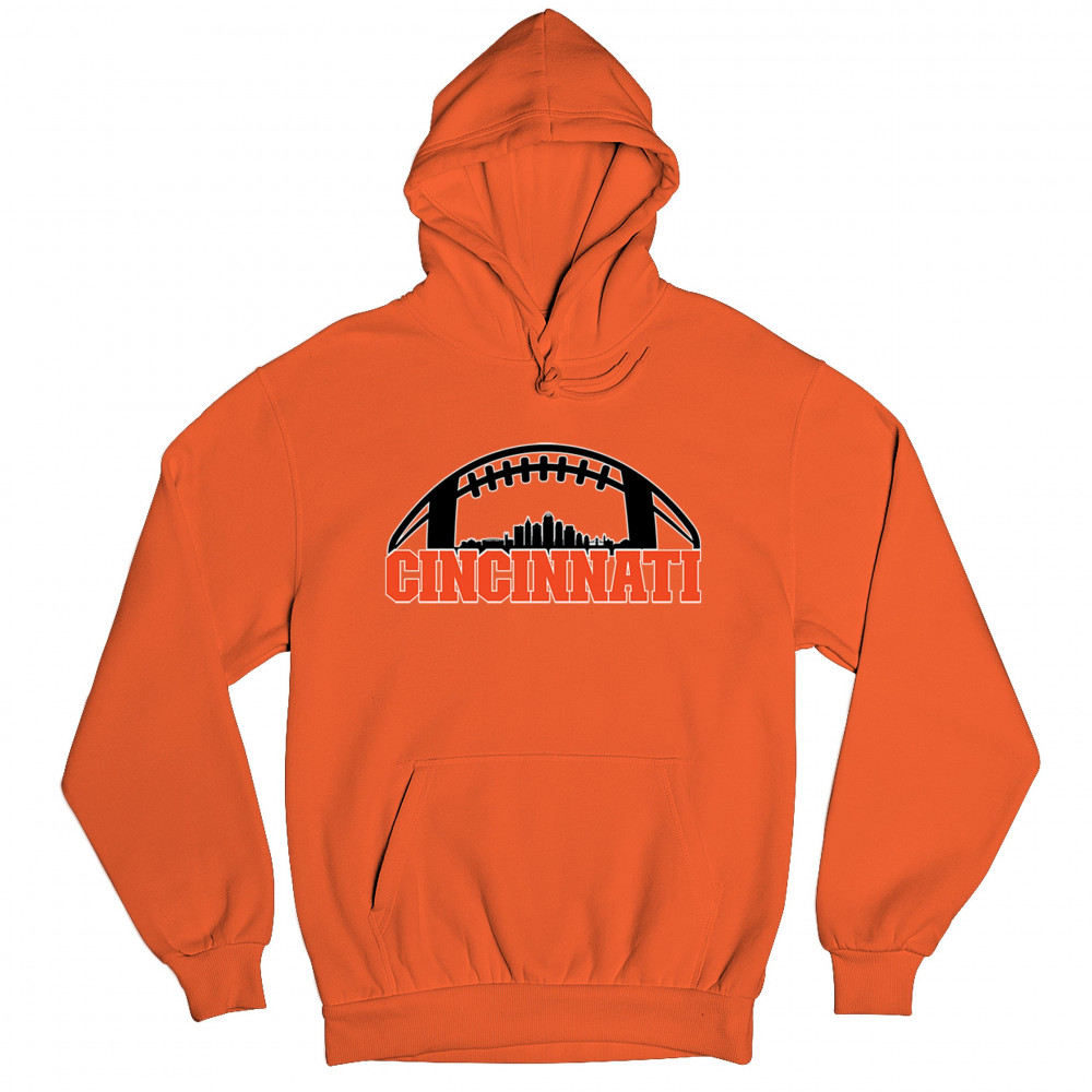 Celebrate Cincinnati and football with this bold skyline design under a football arch. Perfect for fans, tailgates, and game days!