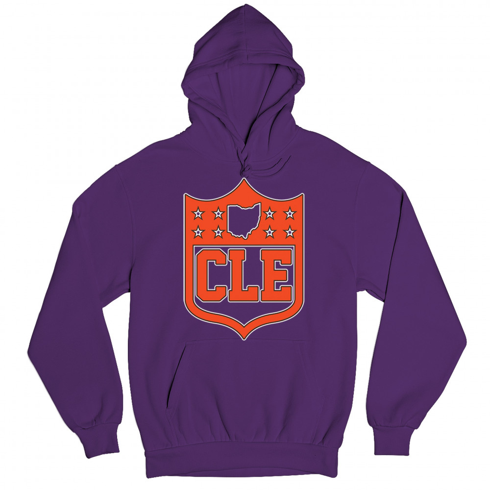 Bold CLE shield design honoring Cleveland football nation with Rust Belt pride, underdog grit, and blue collar sports heritage.